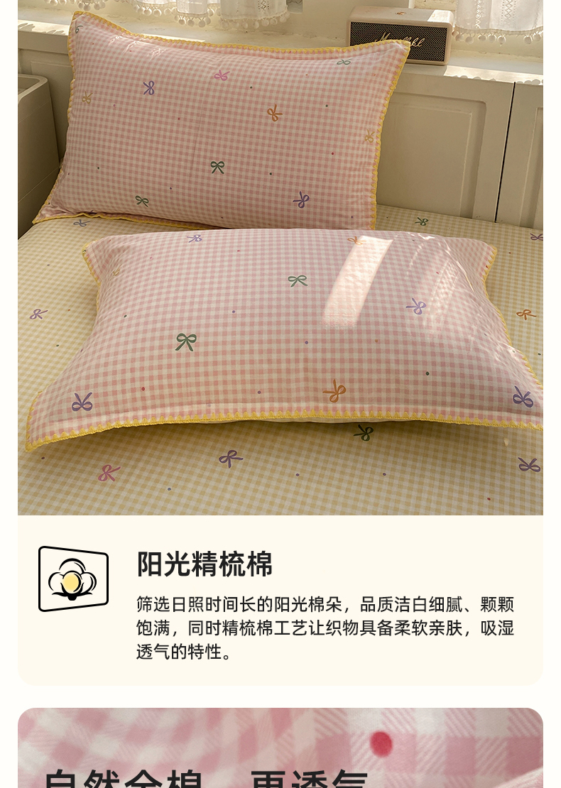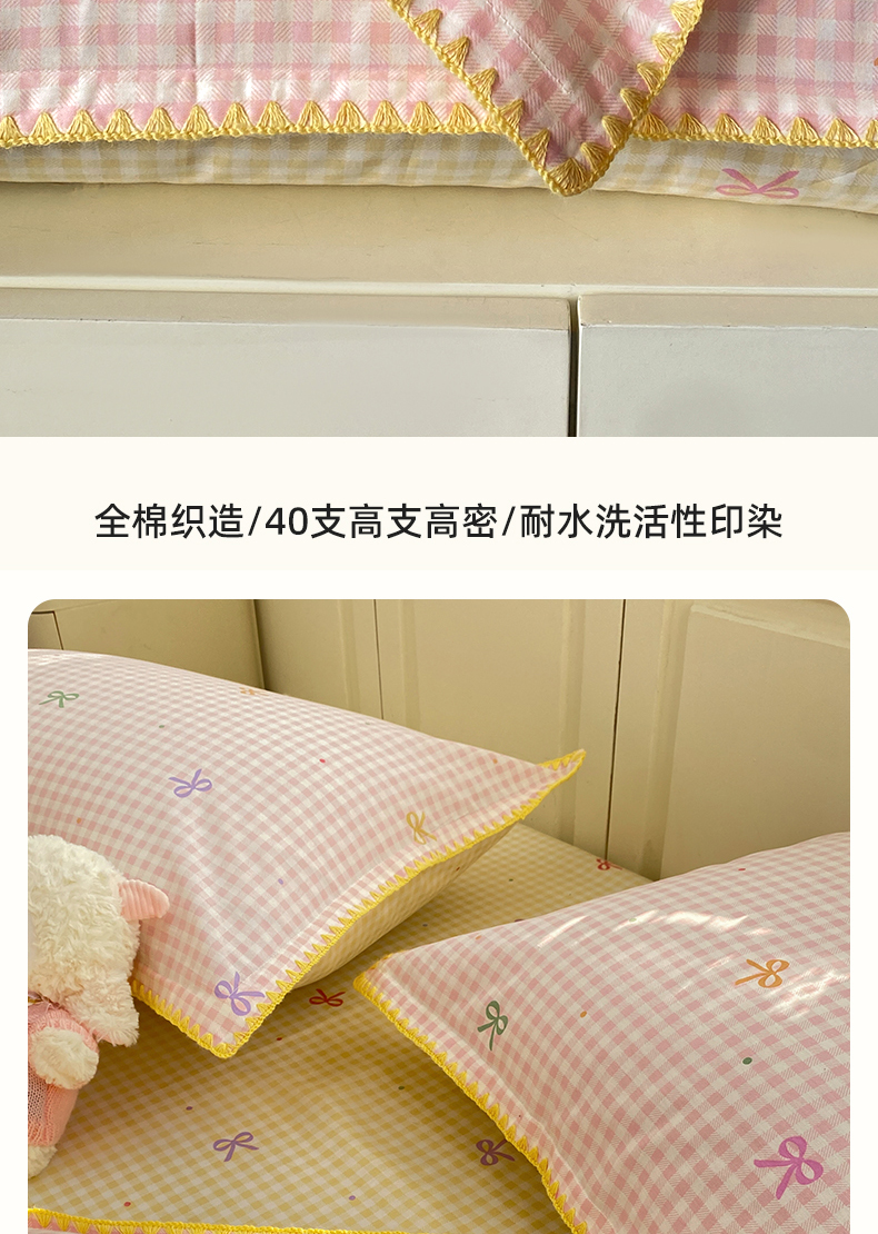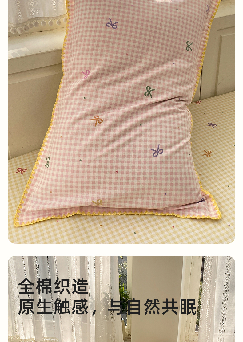 浮光家居 2026新款全棉贝壳边纯棉单枕套系列2 夏日恋格粉