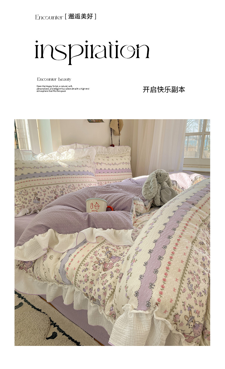 当前位置: 91家纺网 > 商品网购 > 床品套件 > 四件套 > 其它四件套 > 繁花家居 2026新款韩系花边小碎花泡芙棉云感邹邹纱费尔岛风四件套 萝莉小兔