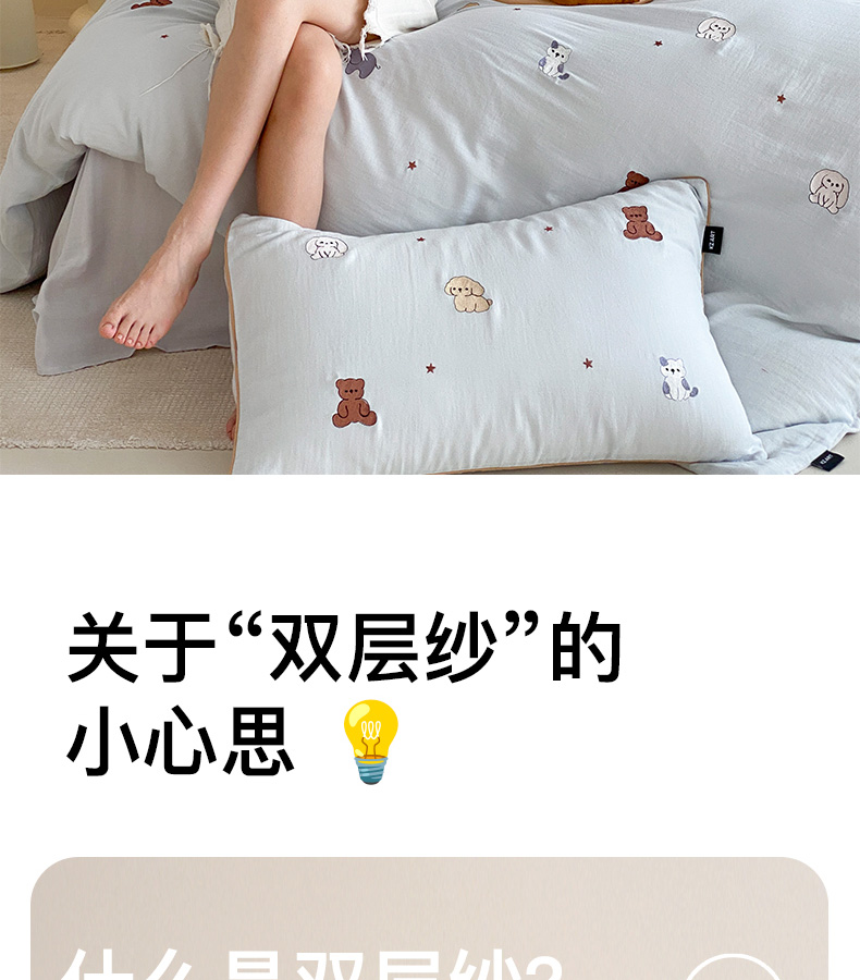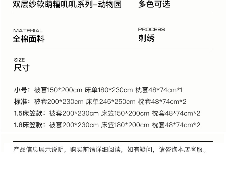 商品名称:(总)卡姿家纺 2026春夏双层纱软萌糯叽叽系列——动物园