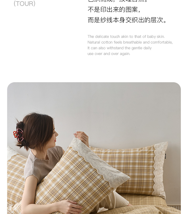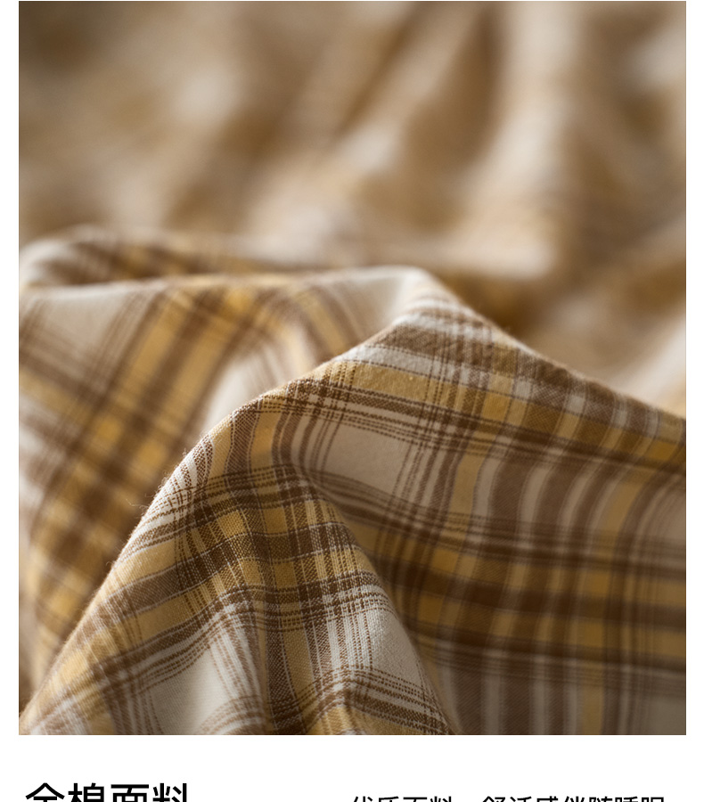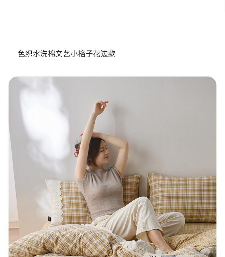 商品名称:卡姿家纺 2026春夏色织水洗棉文艺小格子花边款 利奥-卡其