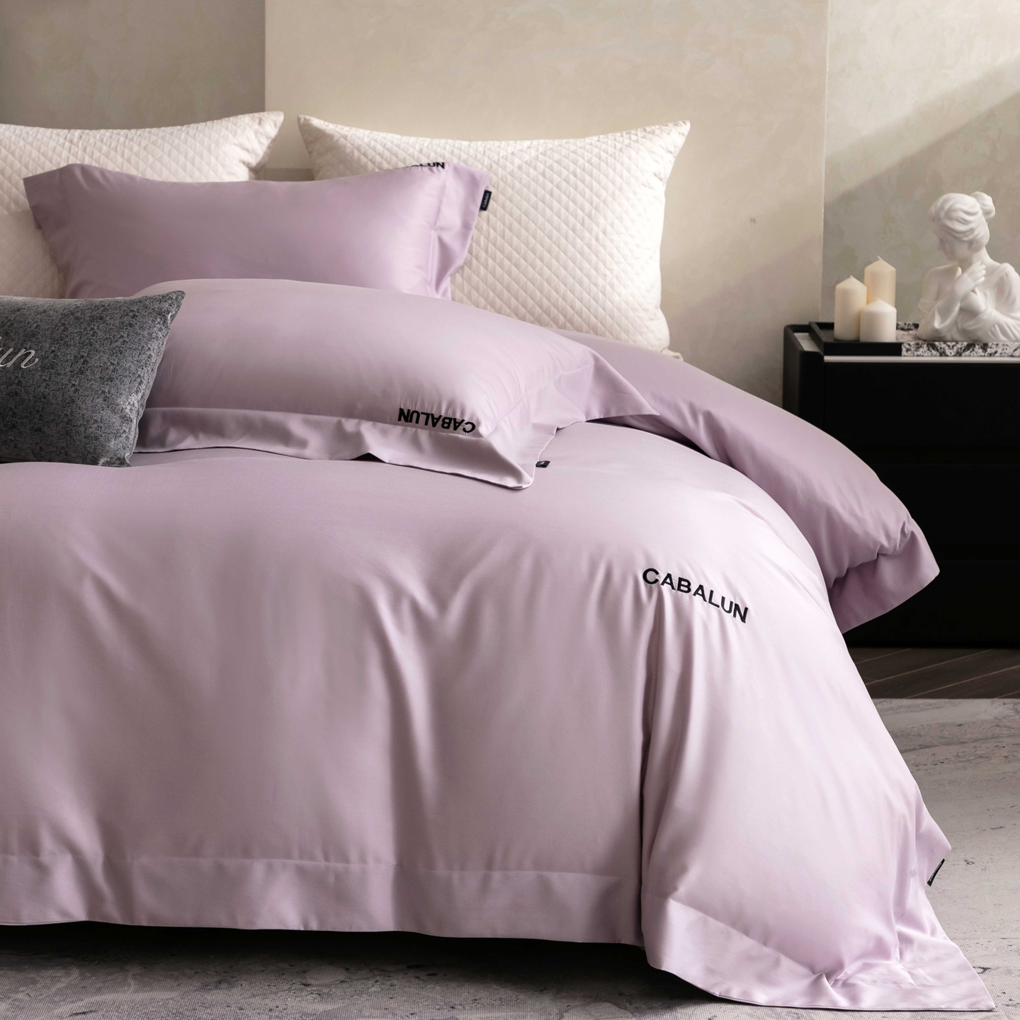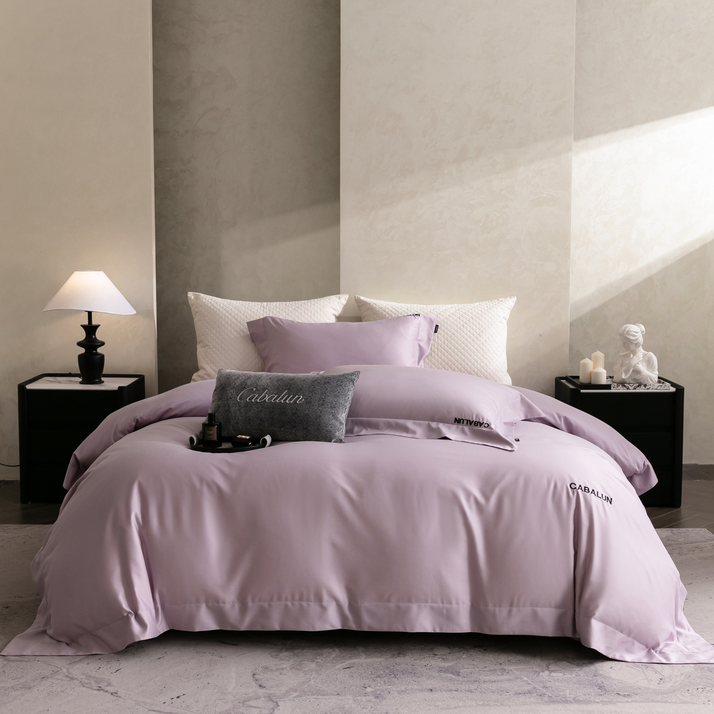 (总)卡巴伦家纺 2026新款全棉安娜轻氧裸感棉亚朵同款四件套(控价标准号:398元 会员:-20元 如需快递盒需加5元),安娜 海葵紫,安娜 奶油白,安娜 山茶粉,安娜 雾蓝灰