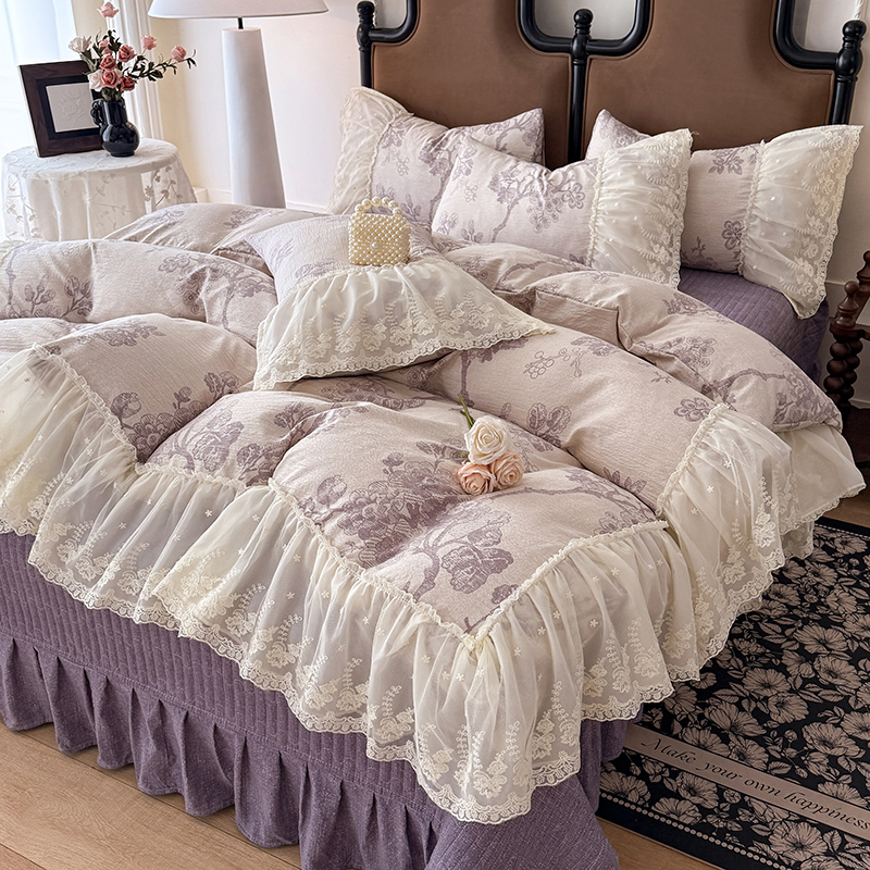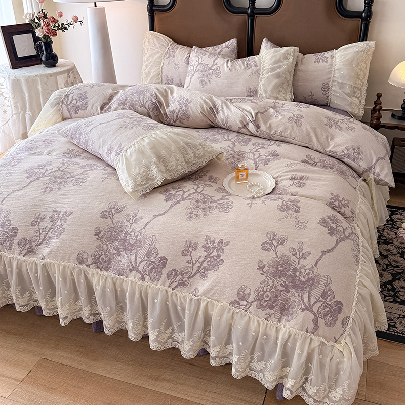 苏米娜2026春夏新款法式复古双层花边大蕾丝水洗棉亚麻床盖款四件套全棉纯棉印花小碎花四件套 普罗旺斯