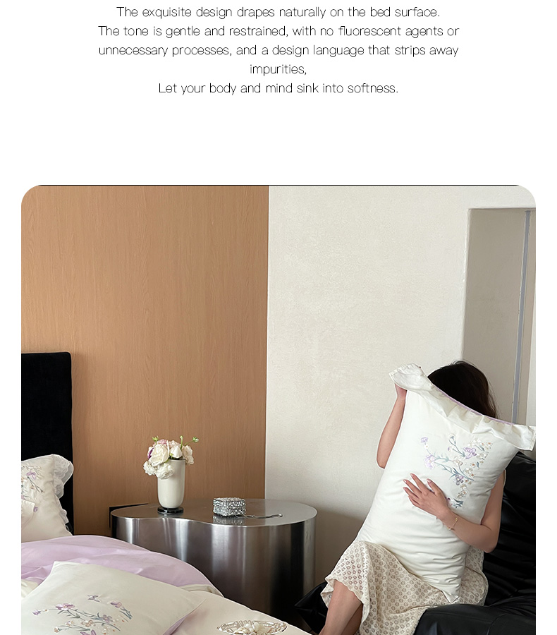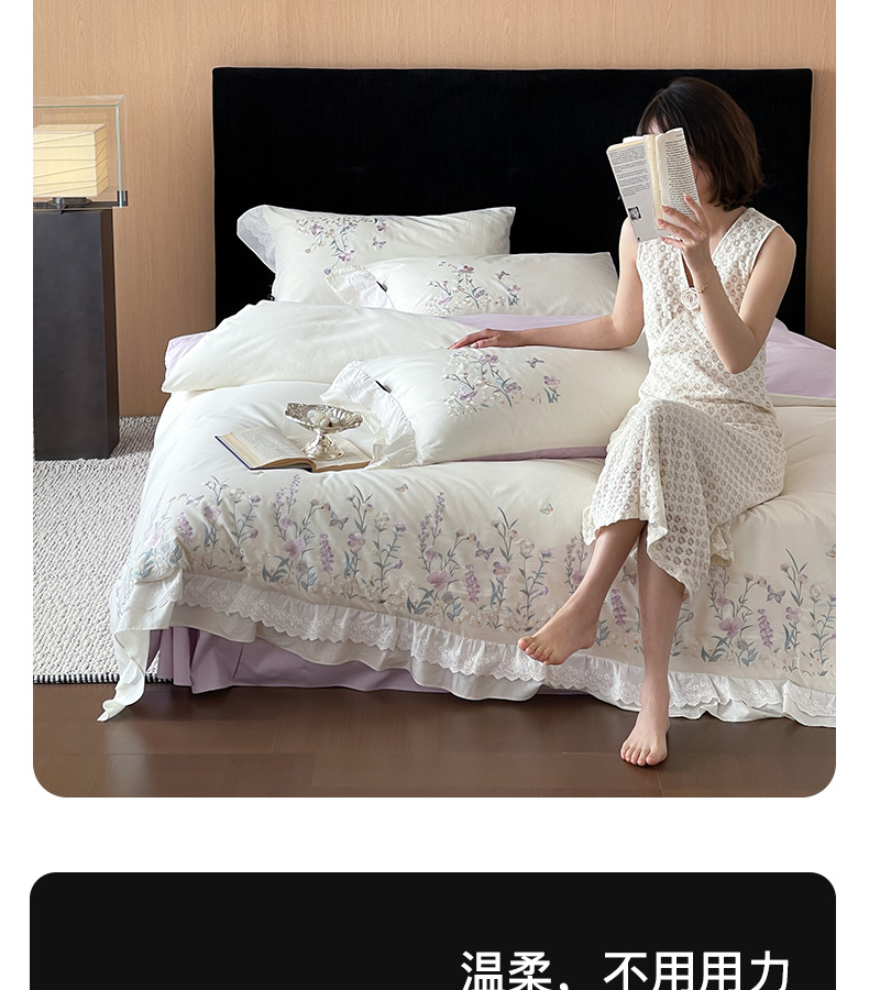 (总)卡姿家纺 2025春夏新款轻奢优雅刺绣金丝羽系列四件套,金丝羽白,金丝羽粉,金丝羽蓝,金丝羽紫