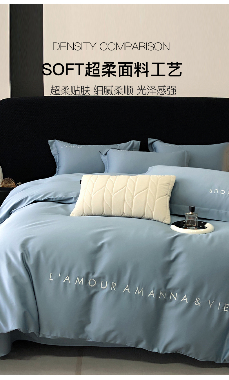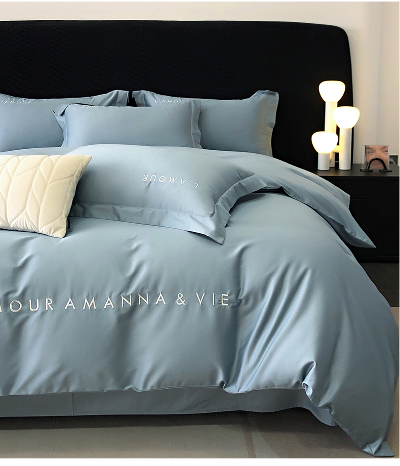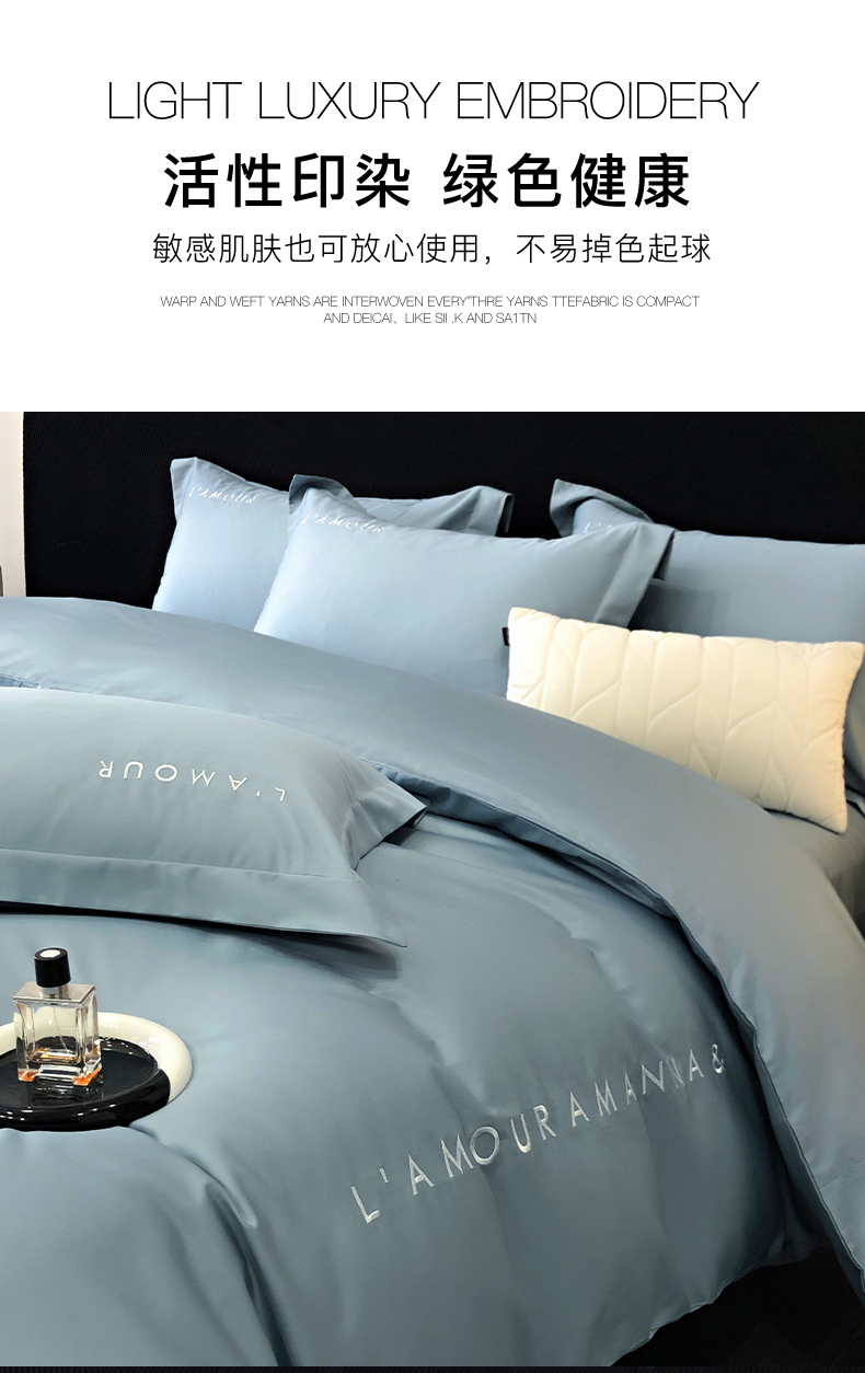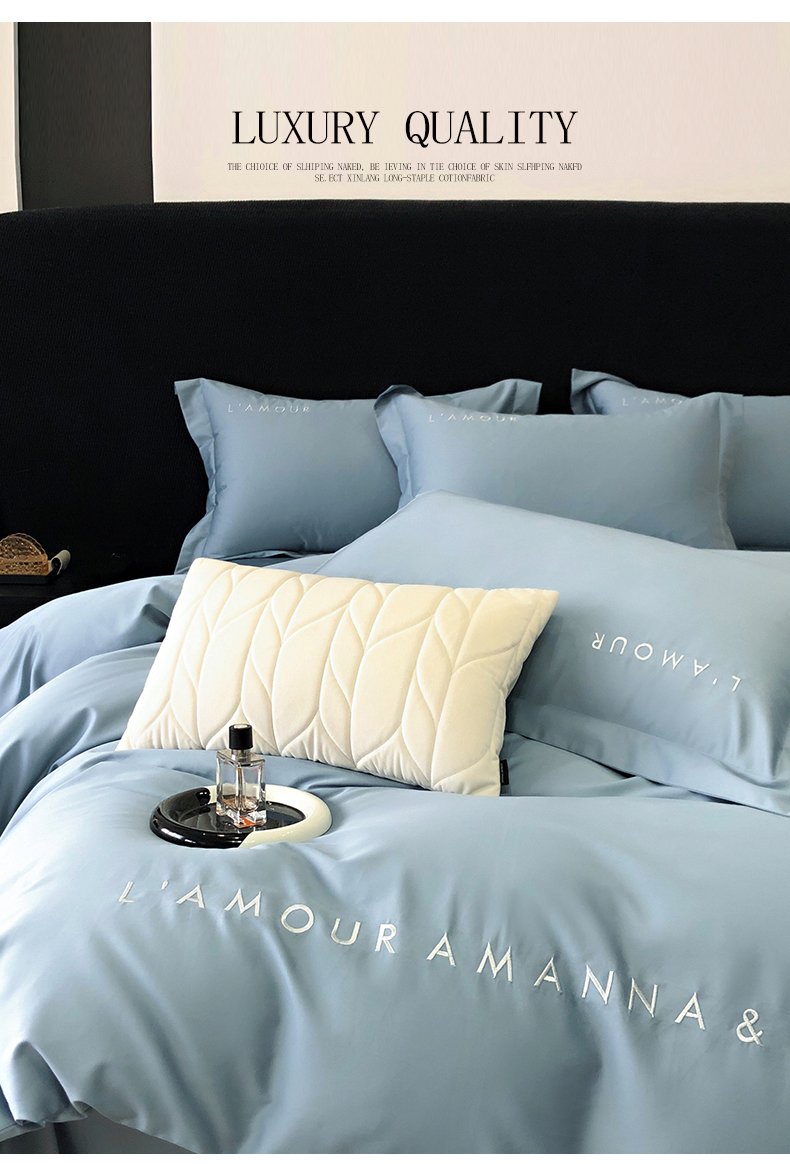 商品名称:禧澜庭 2026新款高支纯棉全棉斜纹四件套刺绣绣花款轻奢三件套--简爱系列 莫奈蓝