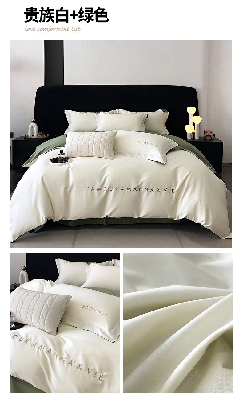 (总)禧澜庭 2026新款高支纯棉全棉斜纹四件套刺绣绣花款轻奢三件套--简爱系列,典雅灰,芙蓉粉,芙蓉粉+浅紫,贵族白+绿色,贵族白+浅紫,贵族白+香槟,莫奈蓝,莫奈蓝+浅灰,拾光绿+香槟,星辰紫