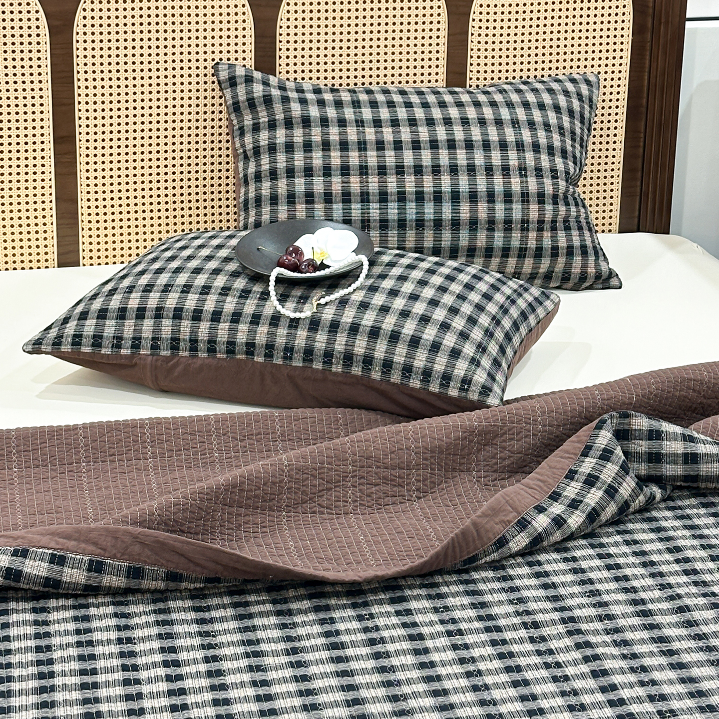 床盖工厂店 2026新款双面水洗全棉填充棉花床盖三件套-重楼格系列 组合图