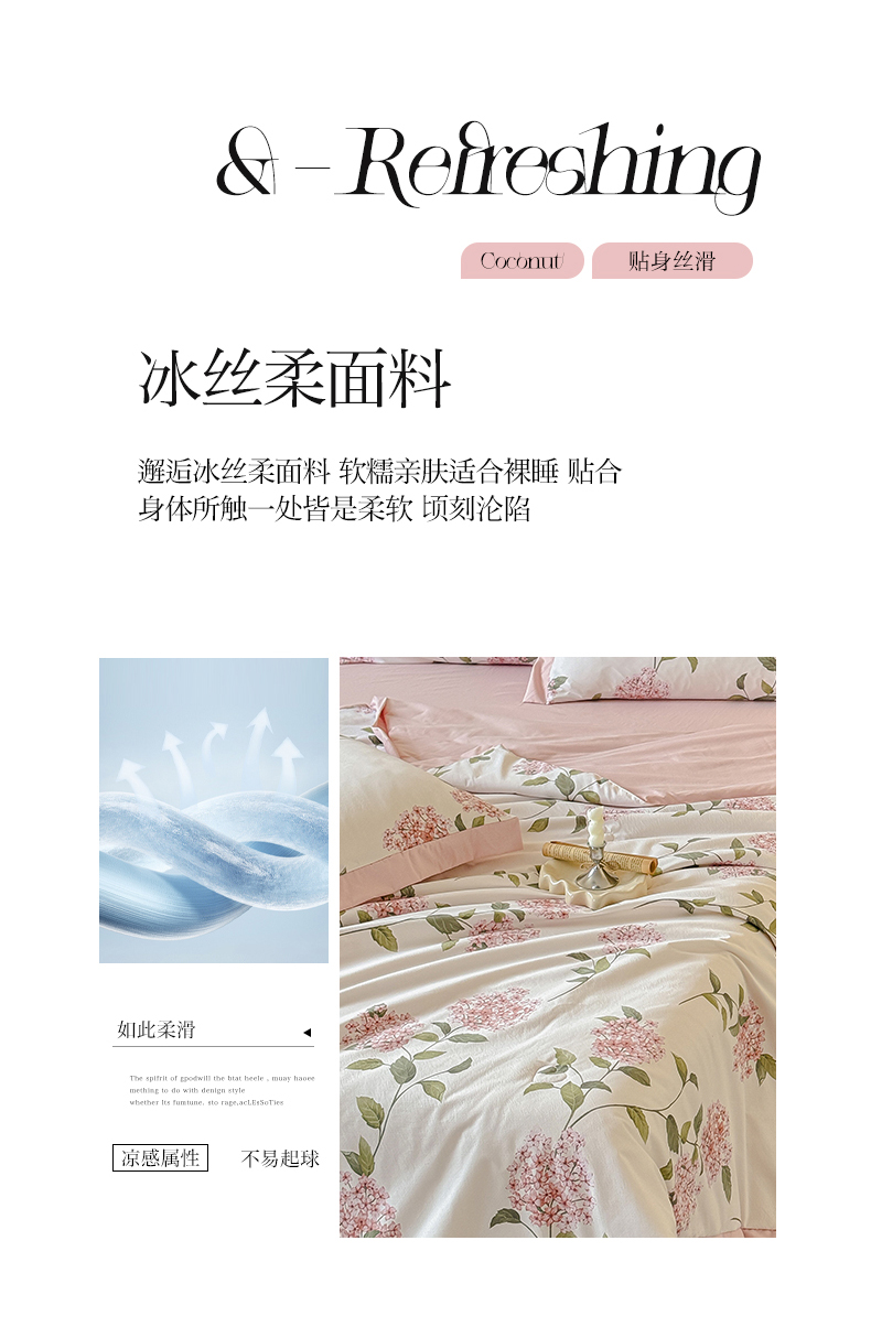 (总)迷尚家居 2026新款冰丝柔夏被四件套,安妮,丛草集,丹青,等风来,花田兔粉,花田兔紫,开心熊,凯西亚,绿野,莫奈花园,南乔,盛夏,水韵紫,松香,未央,绣球,伊利莎,郁金香绿,郁梦蓝,云兮