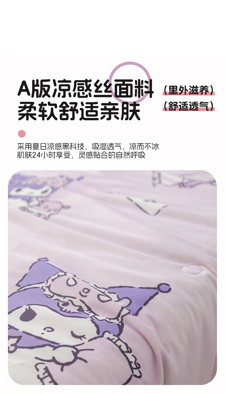 (总)心卓婴童馆 2026新款三丽鸥凉感丝冰豆豆被被子被芯-成人图,kitty猫,爱心库洛米,草莓美乐蒂,独角兽玉桂狗,牛奶库洛米,气球kitty猫,音乐帕恰狗