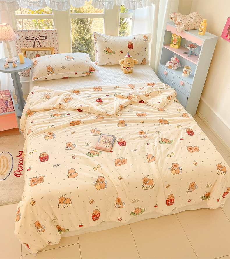 • 91家纺网 家纺一手货源 找家纺 (总)心卓婴童馆 2026春夏新款云感棉四季被大豆被被子被芯,白底星星,彩色南瓜,点点熊,粉豹纹,粉格子小猫,红色樱桃,梦幻乐园,碎花小兔,棕色豹纹