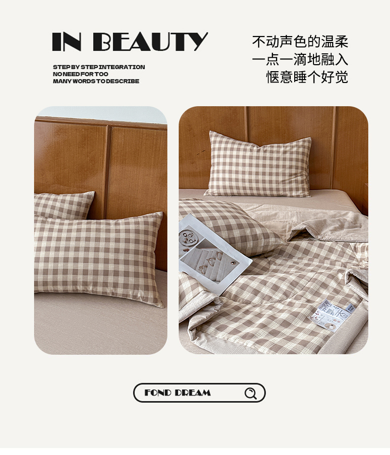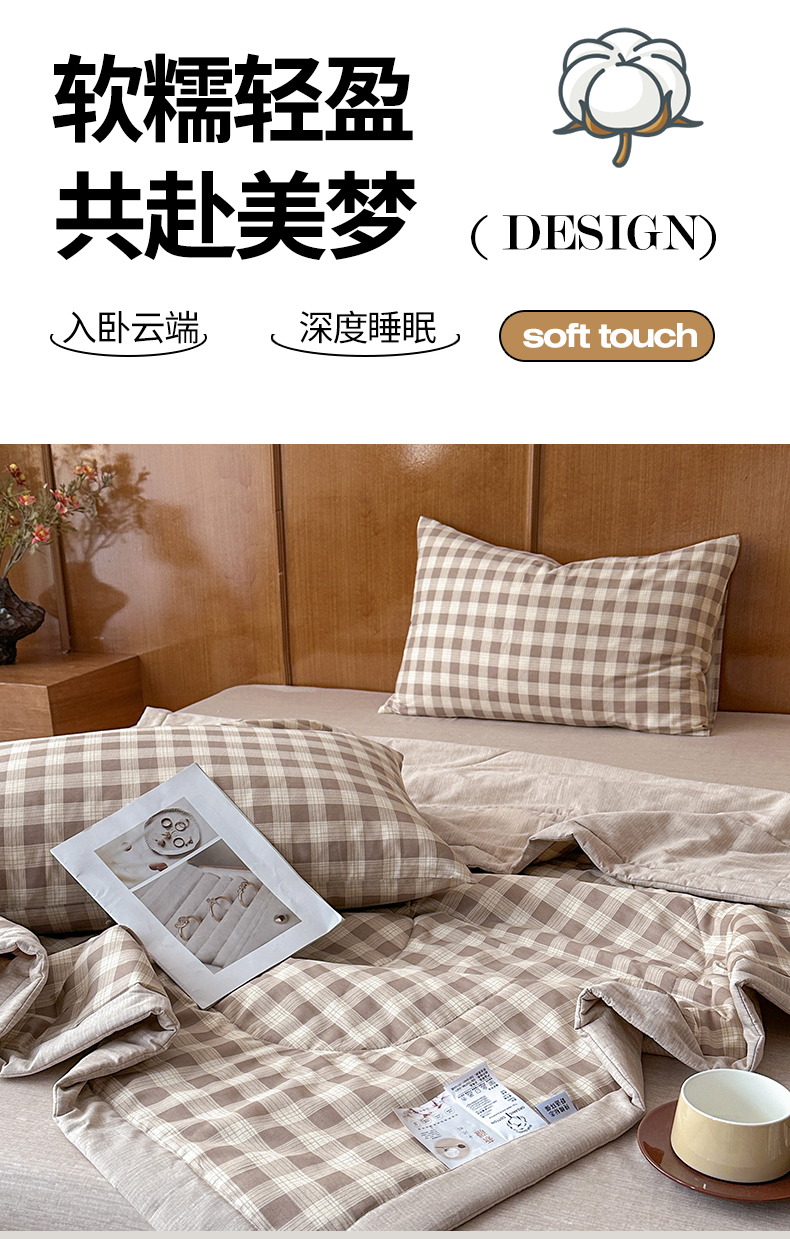 (总)尊妙被业 2026全棉色织水洗全棉棉花夏被 被子被芯 夏被四件套(格子款),贝拉咖,爱格,爱格兰,爱格绿,潮格白,粉小格,咖小格,蓝小格,绿小格