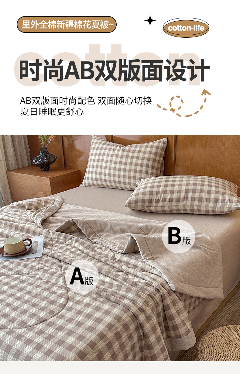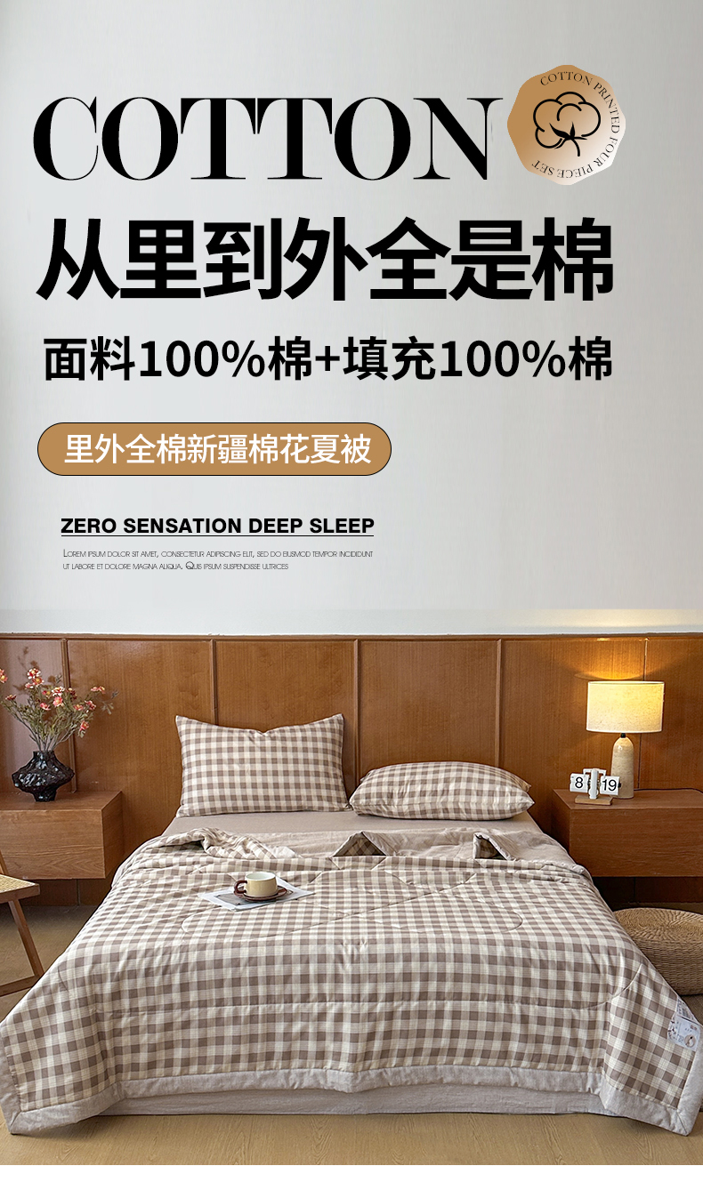 当前位置: 91家纺网 > 商品网购 > 被子 > 夏被 > 尊妙被业 2026新款里外全棉100%新疆棉花夏被被子被芯-简约风 格瑞-咖