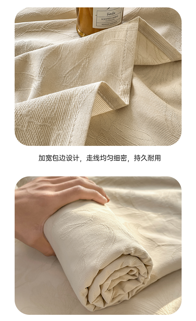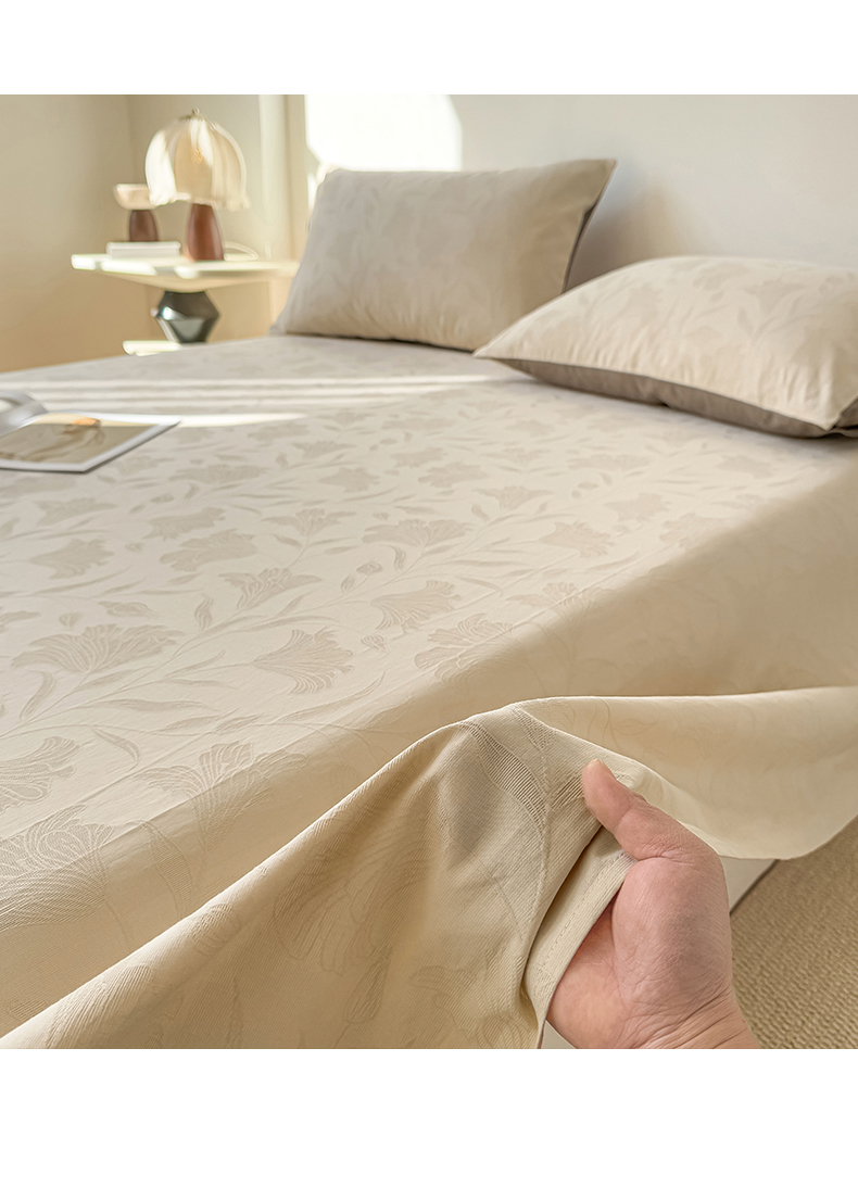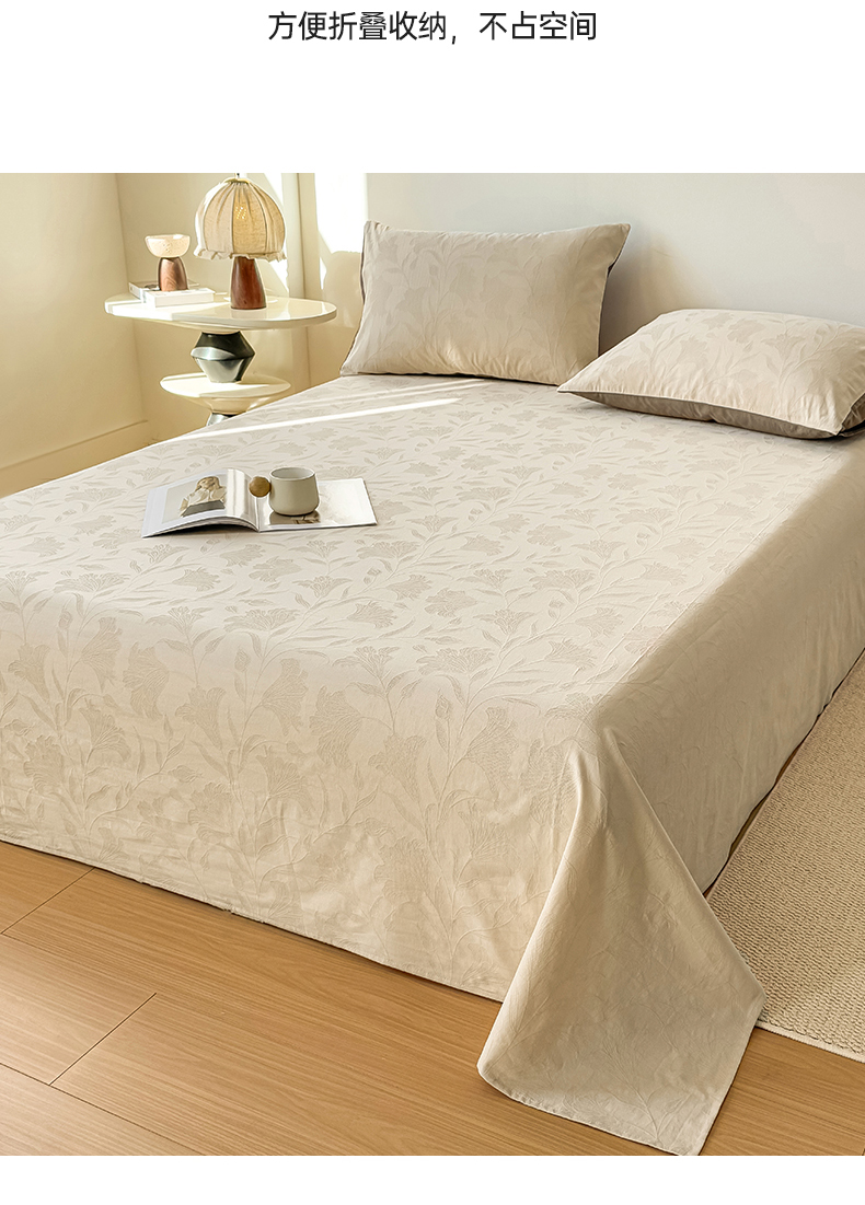 商品名称:女子家纺 2026新款全棉厚织三层水洗色织提花床单 芳菲-可可奶咖