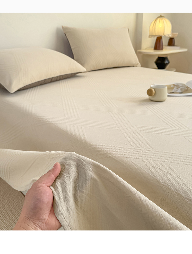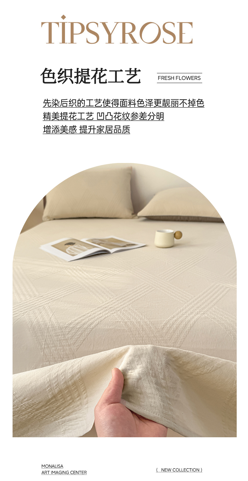 女子家纺 2026新款全棉厚织三层水洗色织提花床单 维希-可可奶咖