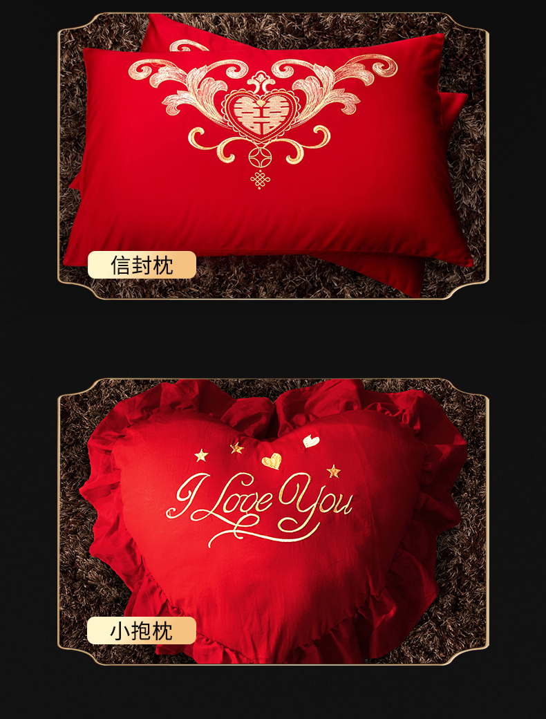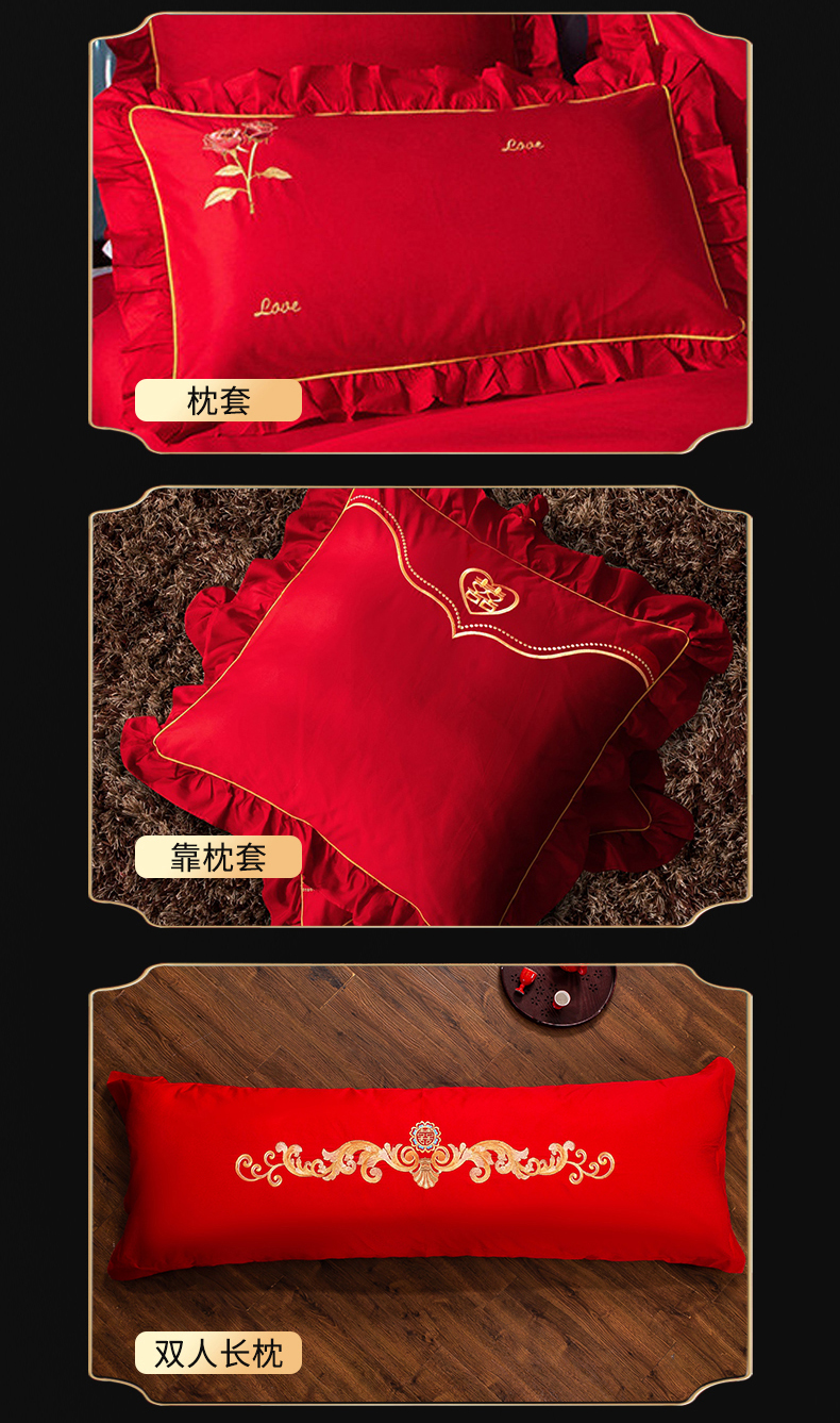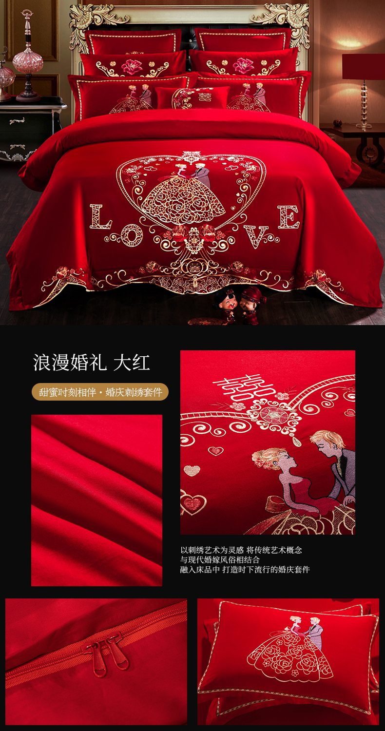 当前位置: 91家纺网 > 商品网购 > 床品套件 > 四件套 > 婚庆四件套 > 慕她家纺 慕她畅销款全棉纯棉婚庆四件套大红色刺绣结婚床上用品 玫瑰蜜语