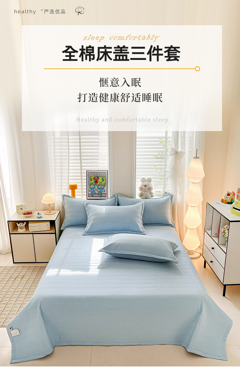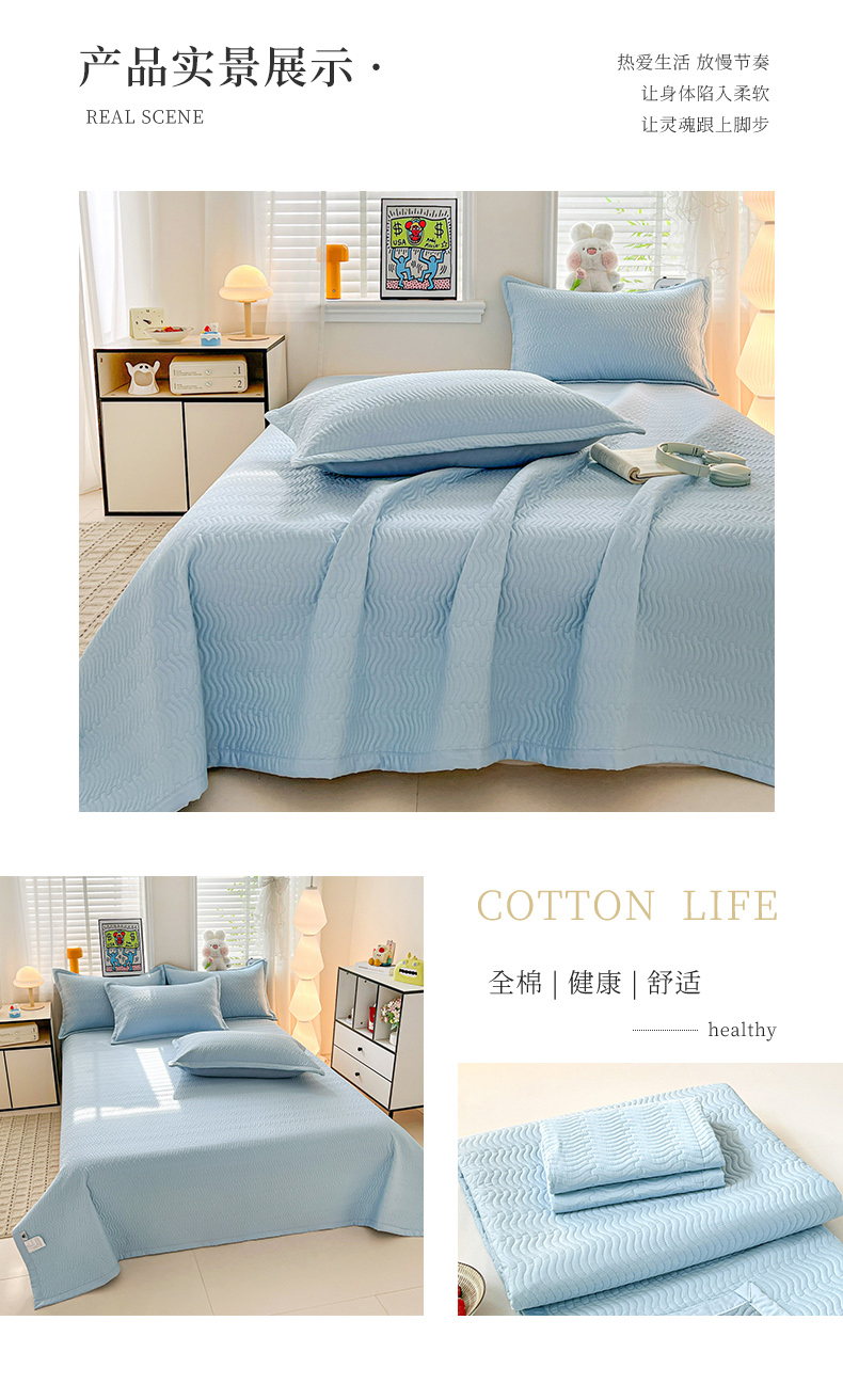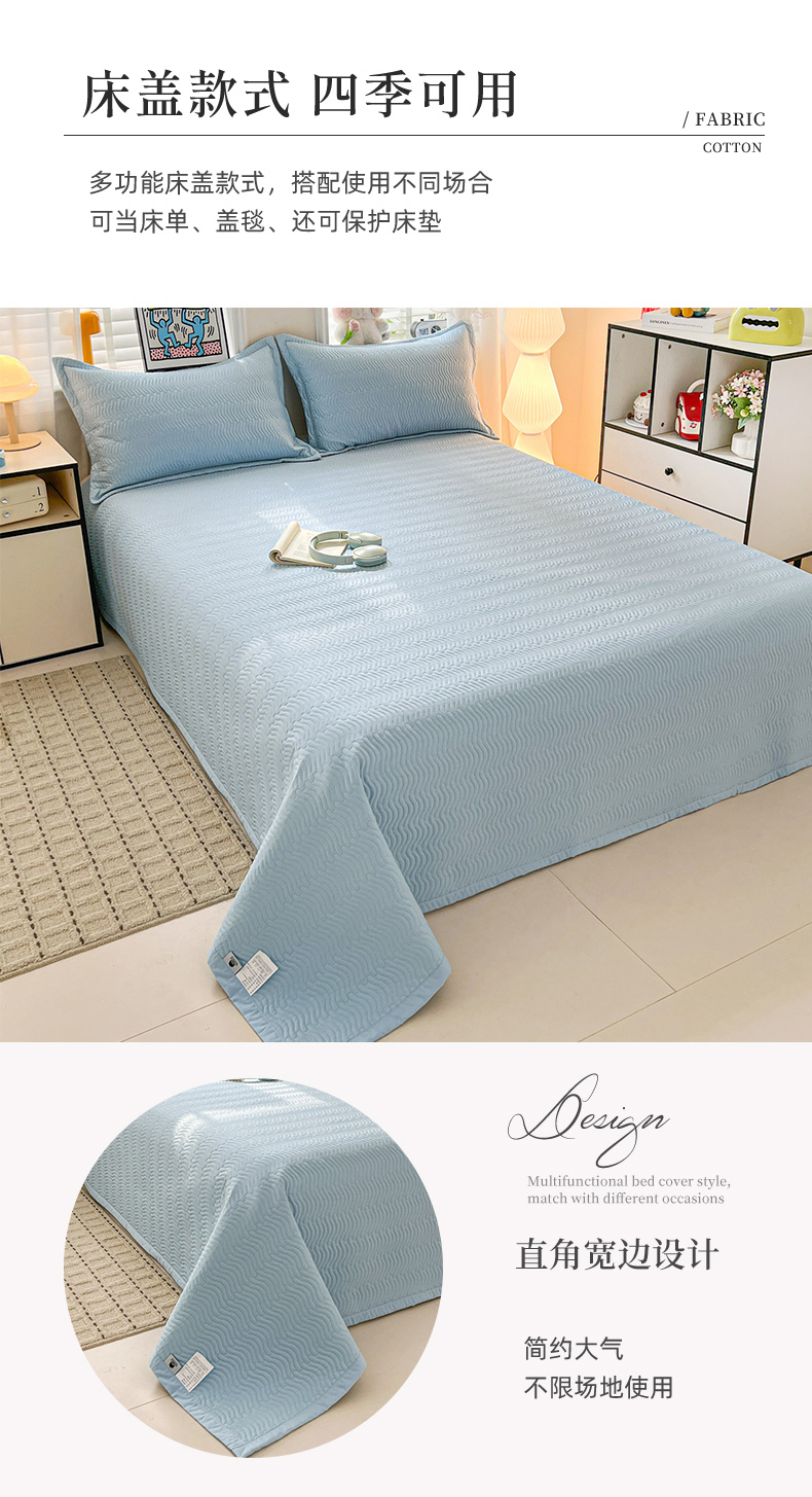 • 91家纺网 家纺一手货源 找家纺 梦精灵家纺 2026新款纯色全棉床盖单件纯棉绗缝夹棉床单 四季通用榻榻米防滑学生宿舍单人床盖枕套 素境-蓝