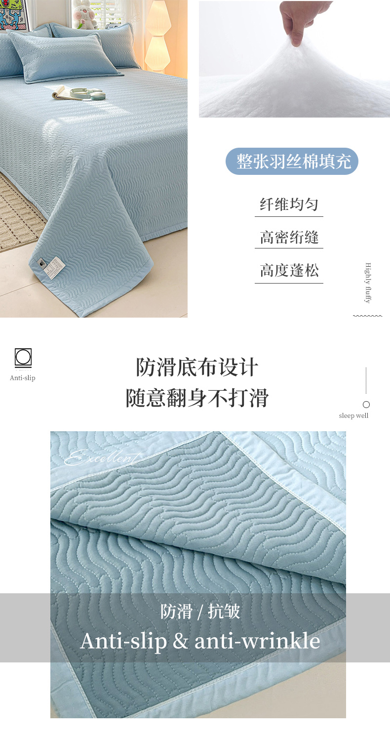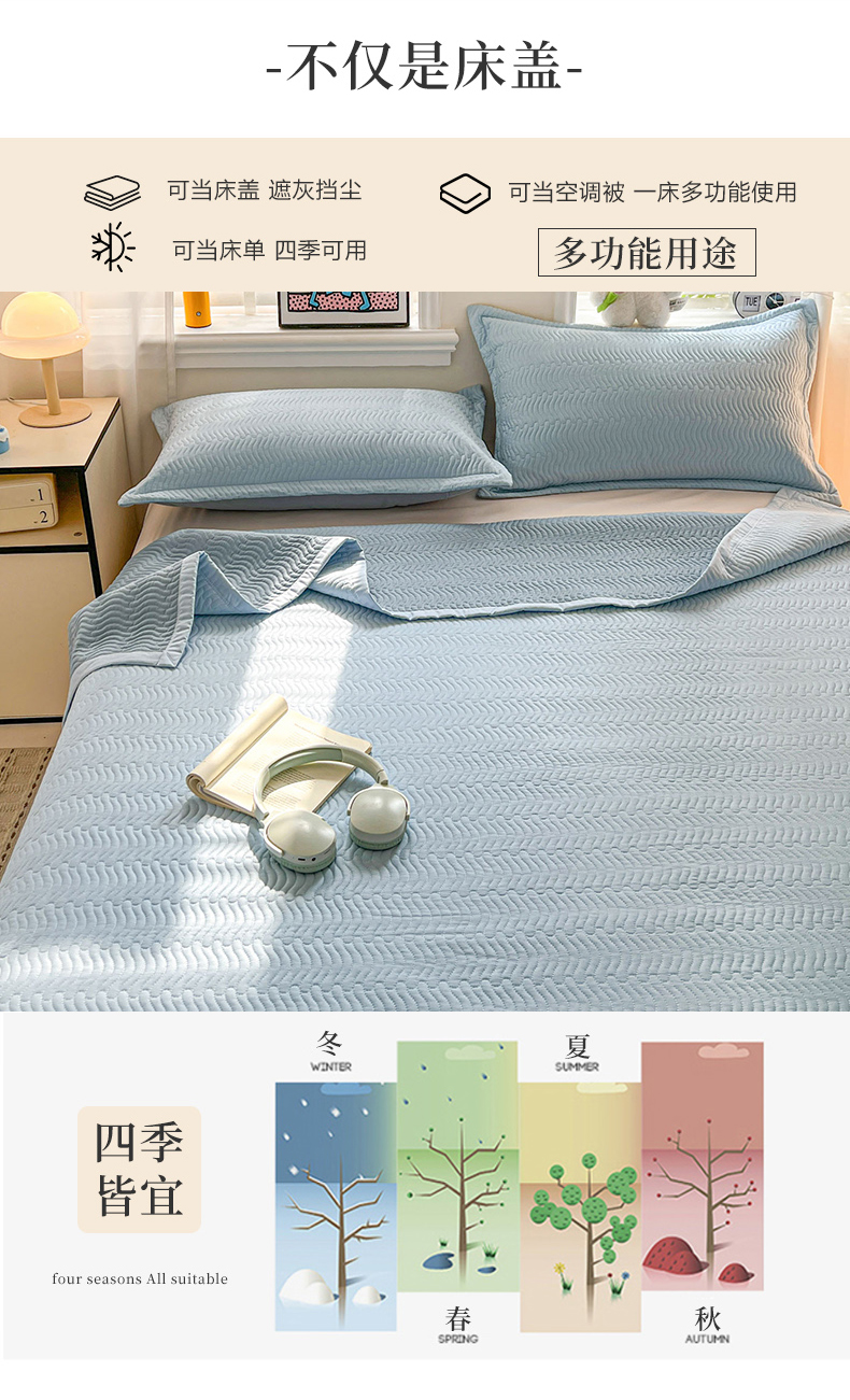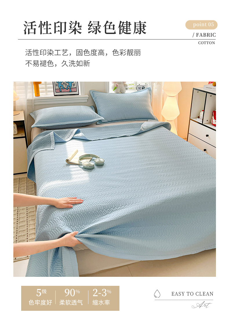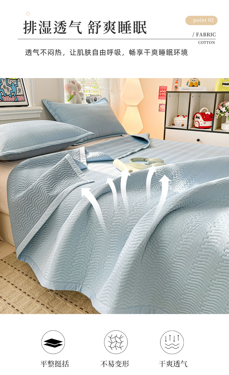 • 91家纺网 家纺一手货源 找家纺 梦精灵家纺 2026新款纯色全棉床盖单件纯棉绗缝夹棉床单 四季通用榻榻米防滑学生宿舍单人床盖枕套 素境-蓝