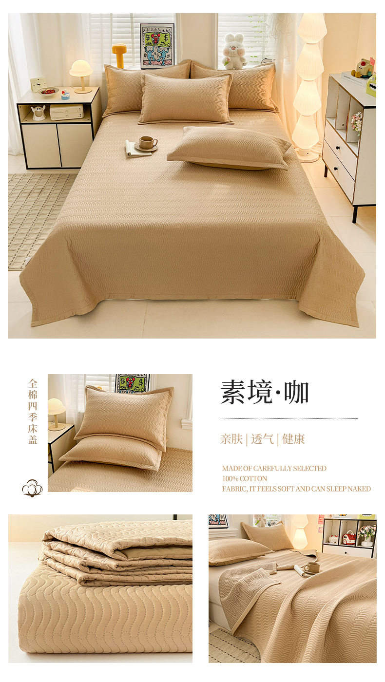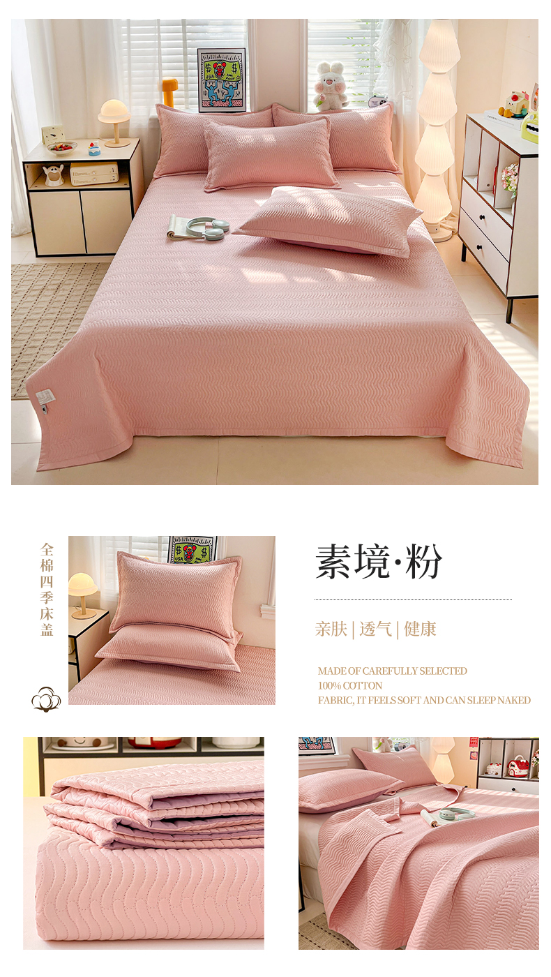 (总)梦精灵家纺 2026新款纯色全棉床盖单件纯棉绗缝夹棉床单 四季通用榻榻米防滑学生宿舍单人床盖枕套,素境-粉,素境-蓝,素境-绿,素境-紫,素境-灰,素境-咖