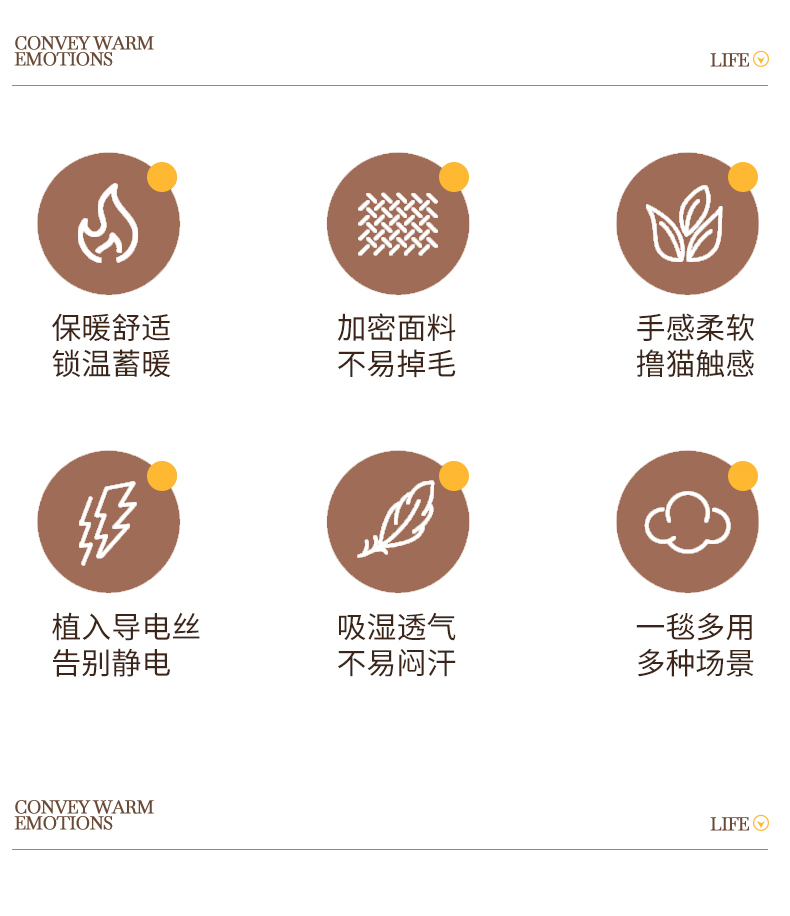 布凡家居 2026新款中古无印风230克牛奶绒复合毛毯毯子 暖橙条纹