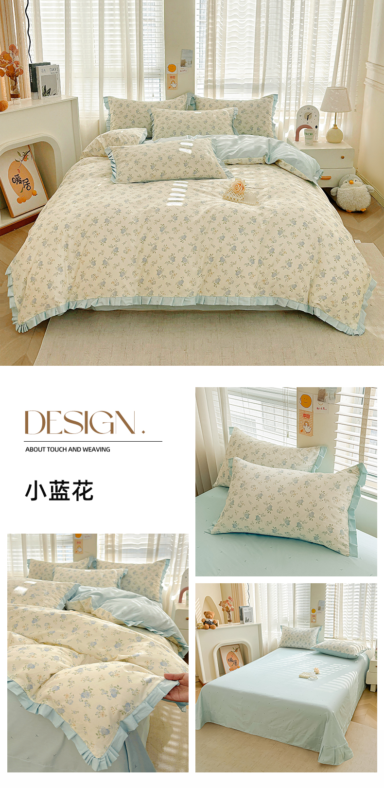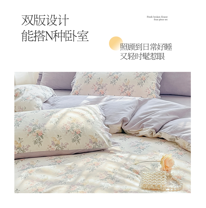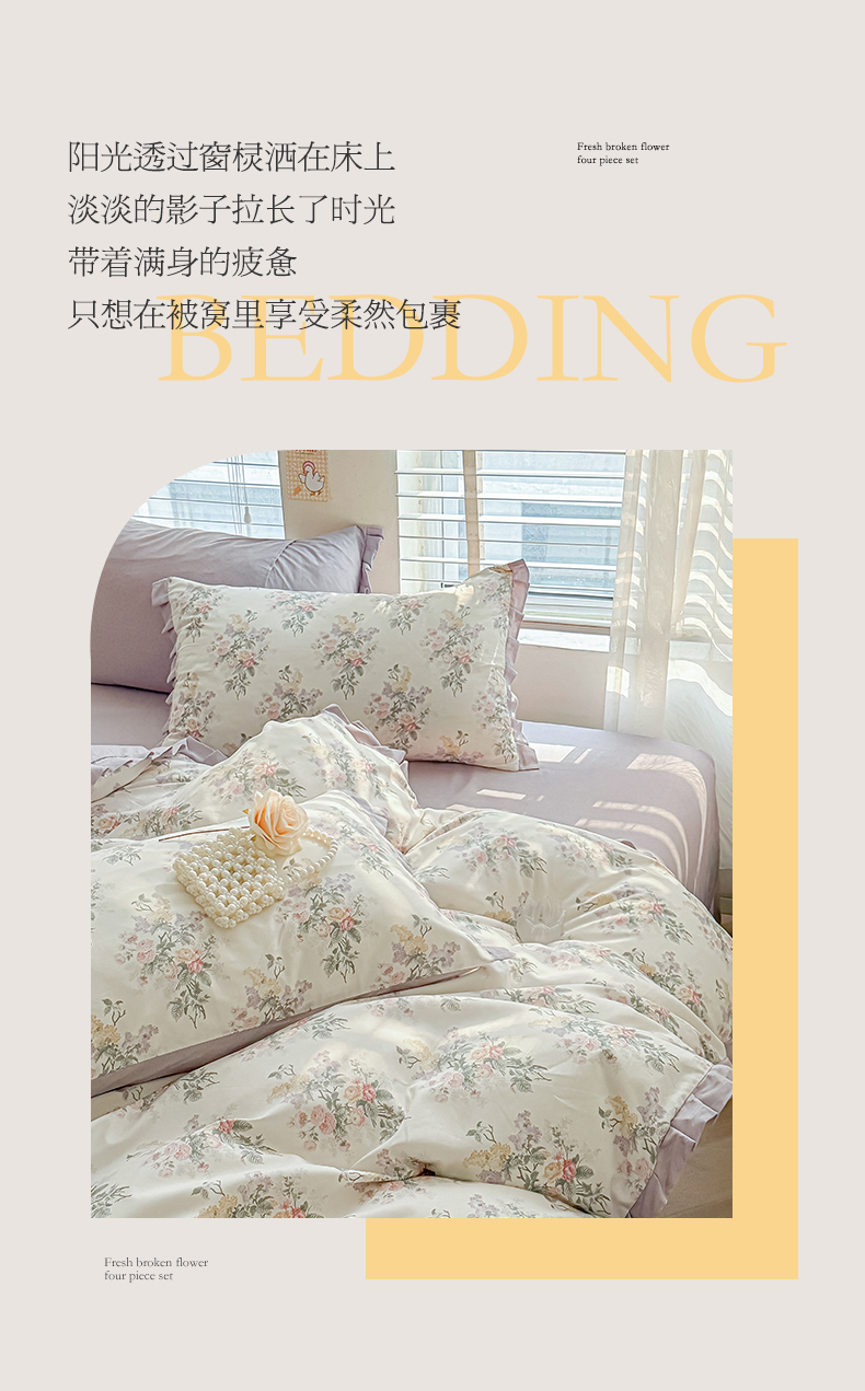 商品名称:(总)帛美家纺 2026新款全棉纯棉韩版花边款印花四件套