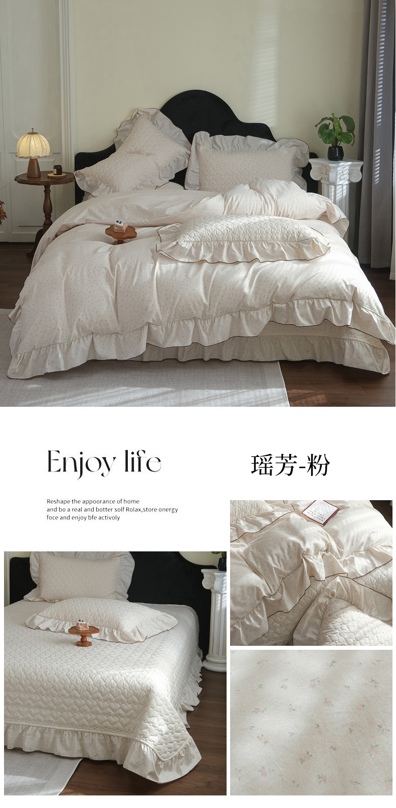 当前位置: 91家纺网 > 商品网购 > 床上用品 > 床盖 > 庭笙 2026新款法式复古花边夹棉床盖床盖四件套 瑶芳-粉