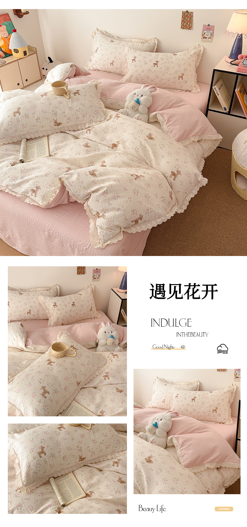 (总)吾欢心 2026新款古法水洗棉韩版公主风双层花边四件套,赫拉花园,花间拾梦,花开半夏,花仙子,花园漫步,花园小熊,花韵,快乐小狗,梨花梦,露花浓,梦幻岛,晚安狗,嫣然如梦