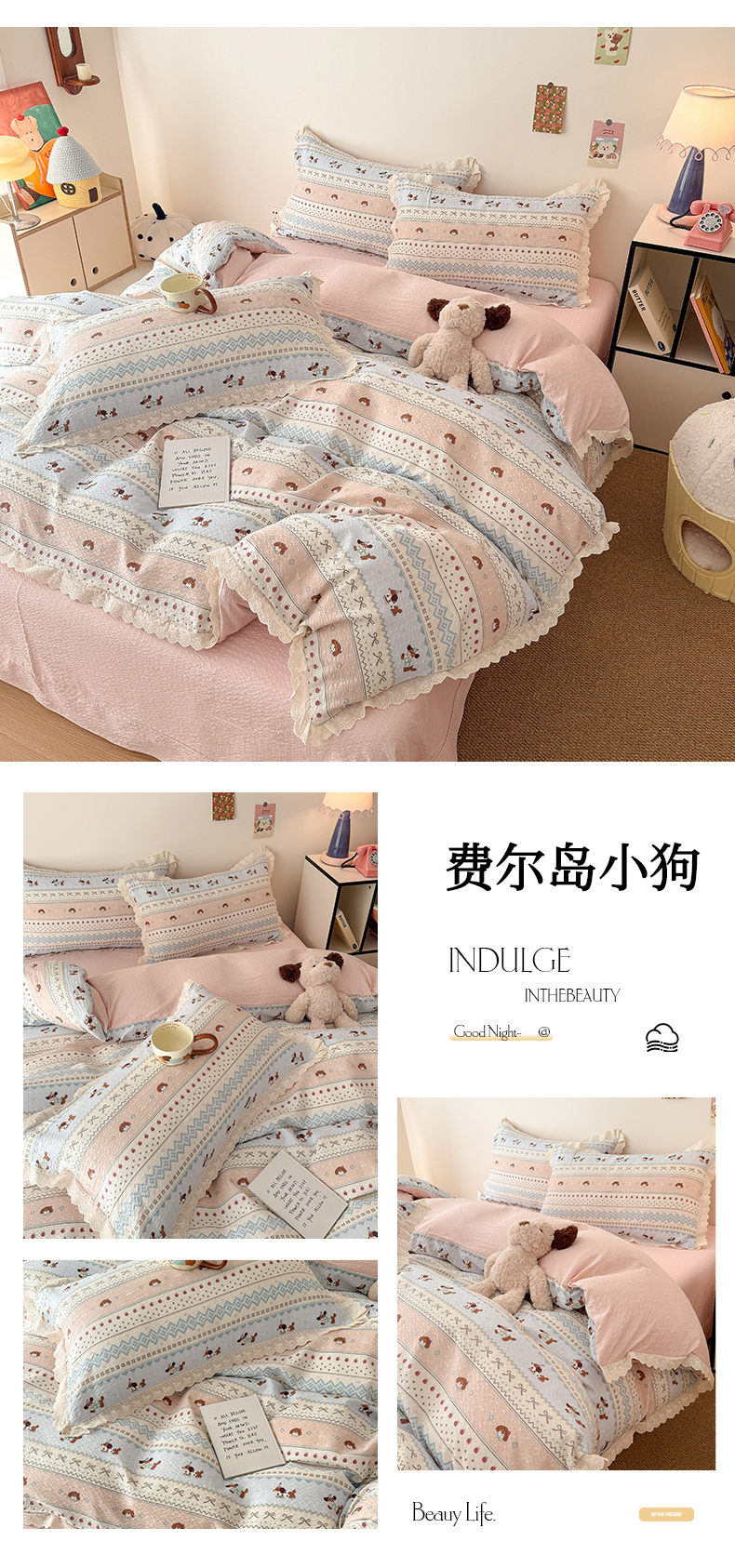 (总)吾欢心 2026新款古法水洗棉韩版公主风双层花边四件套,赫拉花园,花间拾梦,花开半夏,花仙子,花园漫步,花园小熊,花韵,快乐小狗,梨花梦,露花浓,梦幻岛,晚安狗,嫣然如梦