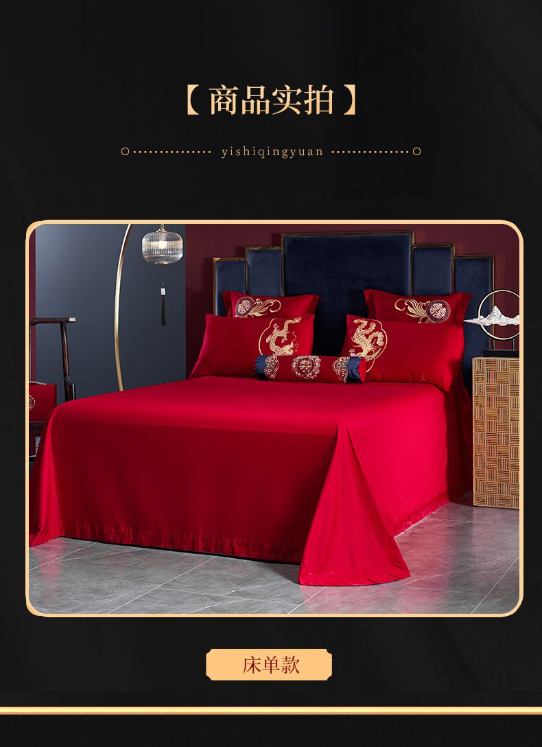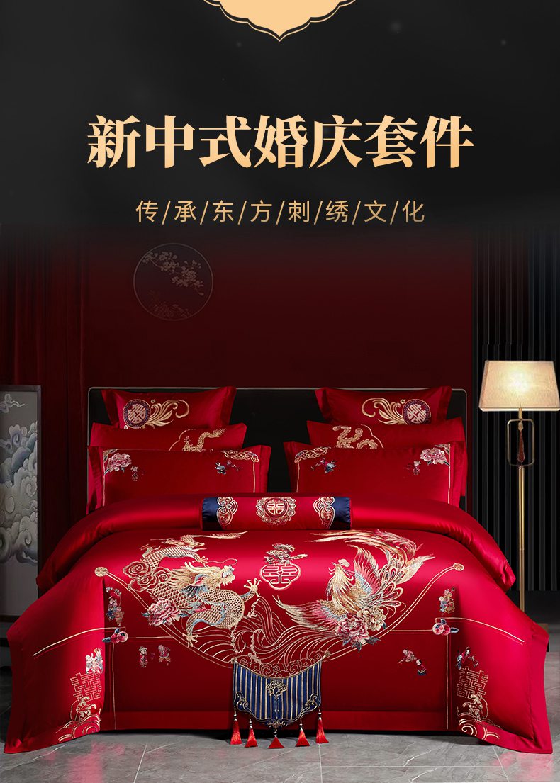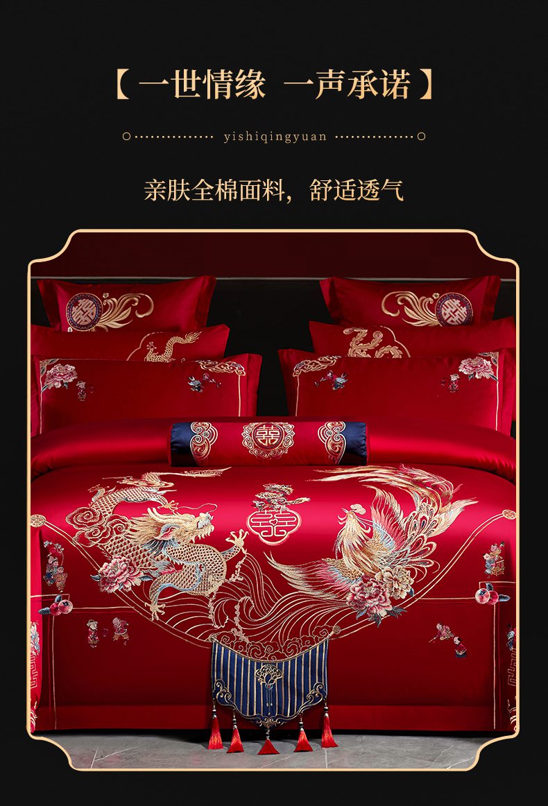 当前位置: 91家纺网 > 商品网购 > 床品套件 > 四件套 > 婚庆四件套 > 慕她家纺 2026慕她大花工艺款全棉纯棉婚庆四件套大红色刺绣结婚床上用品 挚爱龙凤