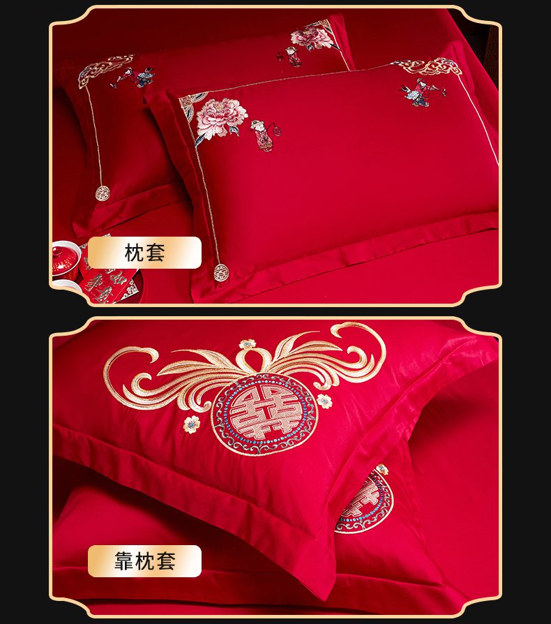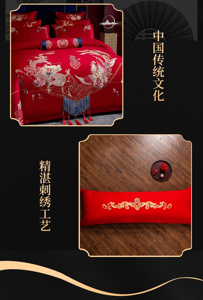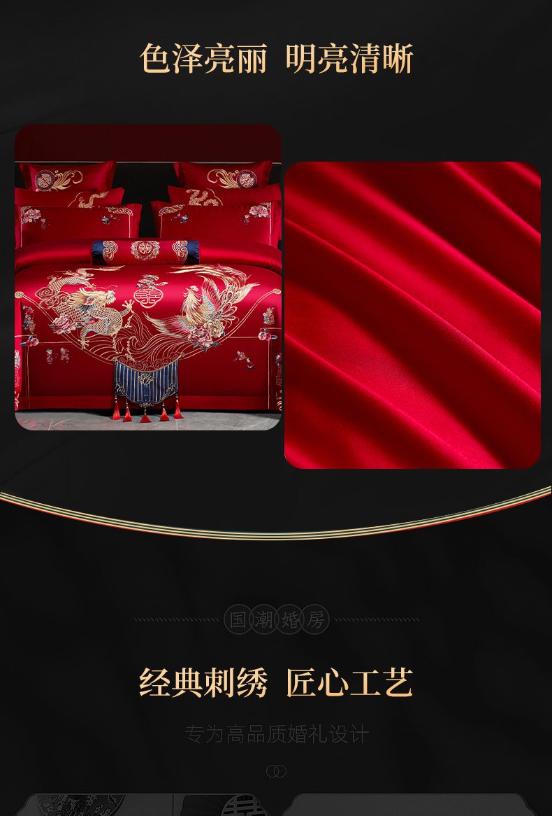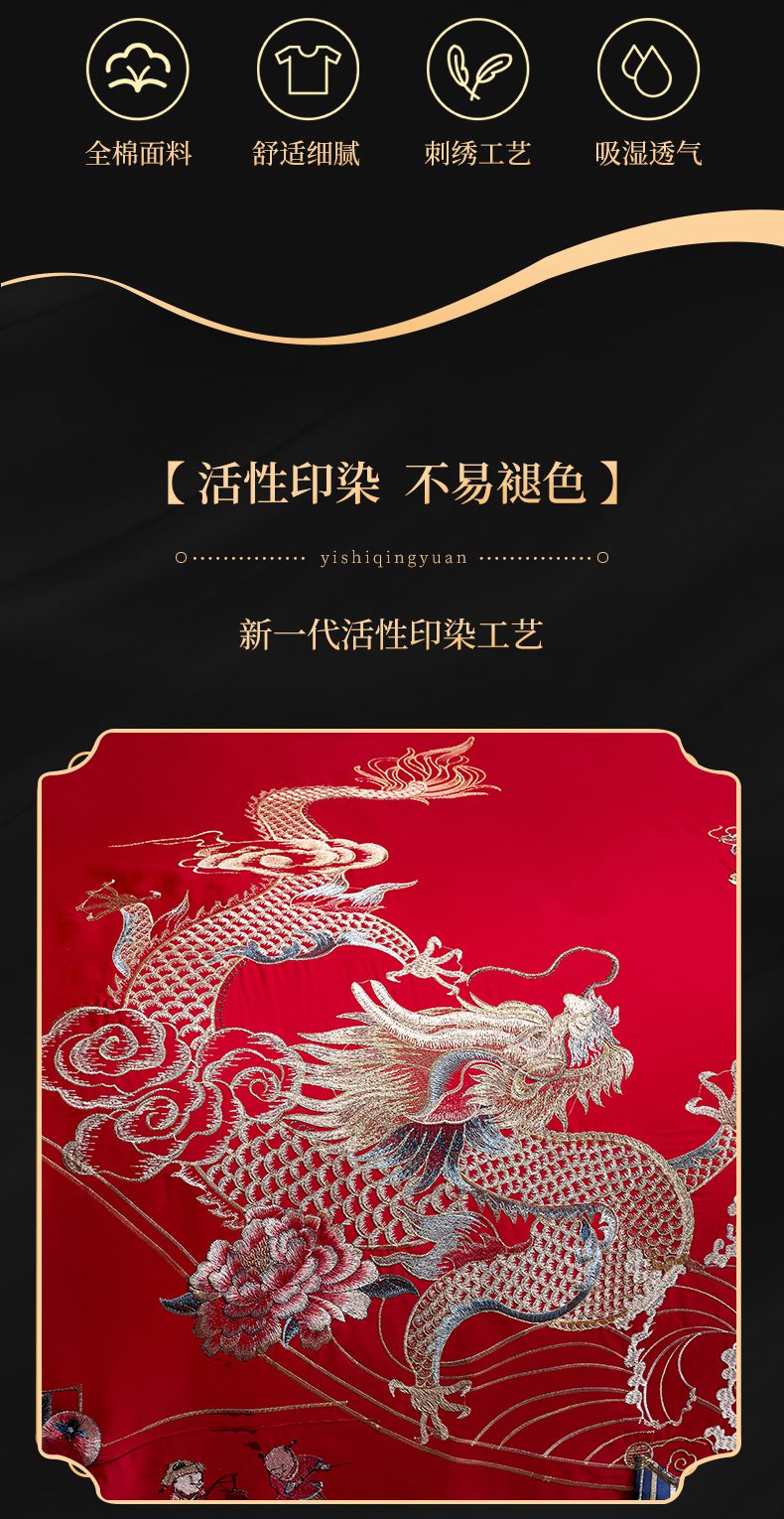当前位置: 91家纺网 > 商品网购 > 床品套件 > 四件套 > 婚庆四件套 > 慕她家纺 2026慕她大花工艺款全棉纯棉婚庆四件套大红色刺绣结婚床上用品 挚爱龙凤