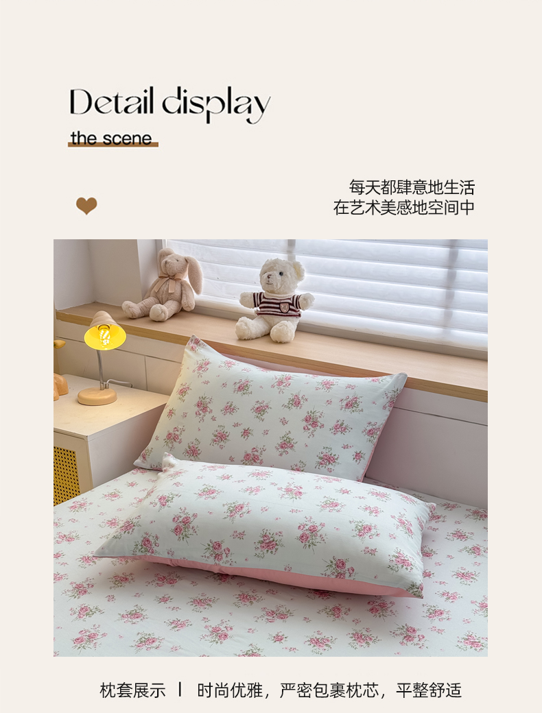 (总)爱多多家居 2026春夏新款水洗古棉枕套,伊甸花梦,薄荷玫瑰,晚安熊,格子熊,酒红波点,碎花小兔,星星人,星野格子,熊猫绿,云格粉结