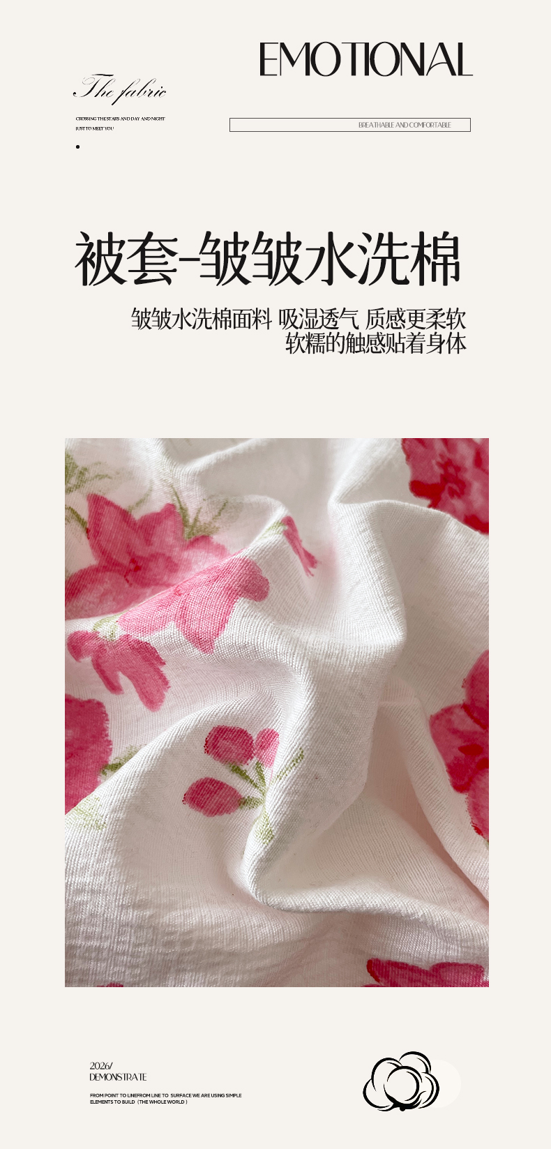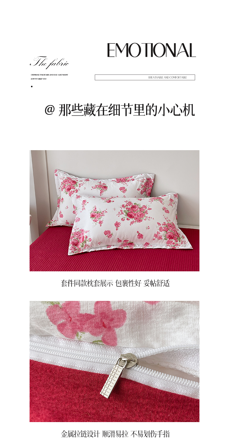 (总)锦彩家居 2026新款皱皱水洗棉夏被床盖四件套,安妮,繁花,海德花园,卡地亚-红,玫瑰园,樱桃蜜语