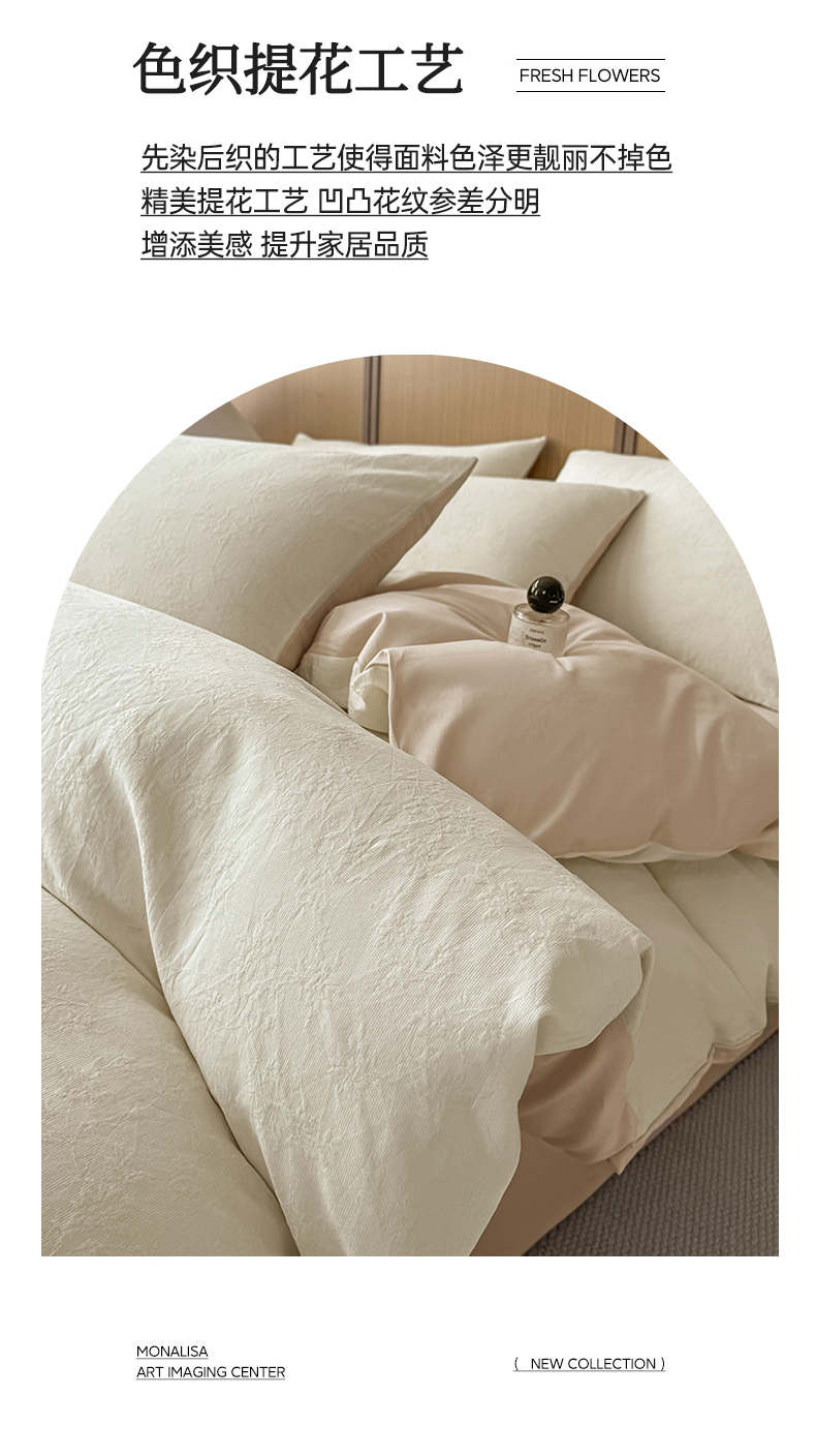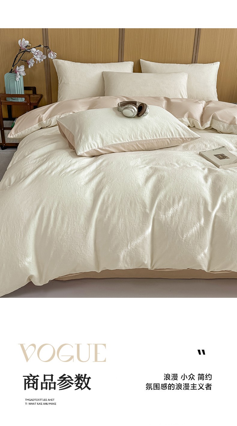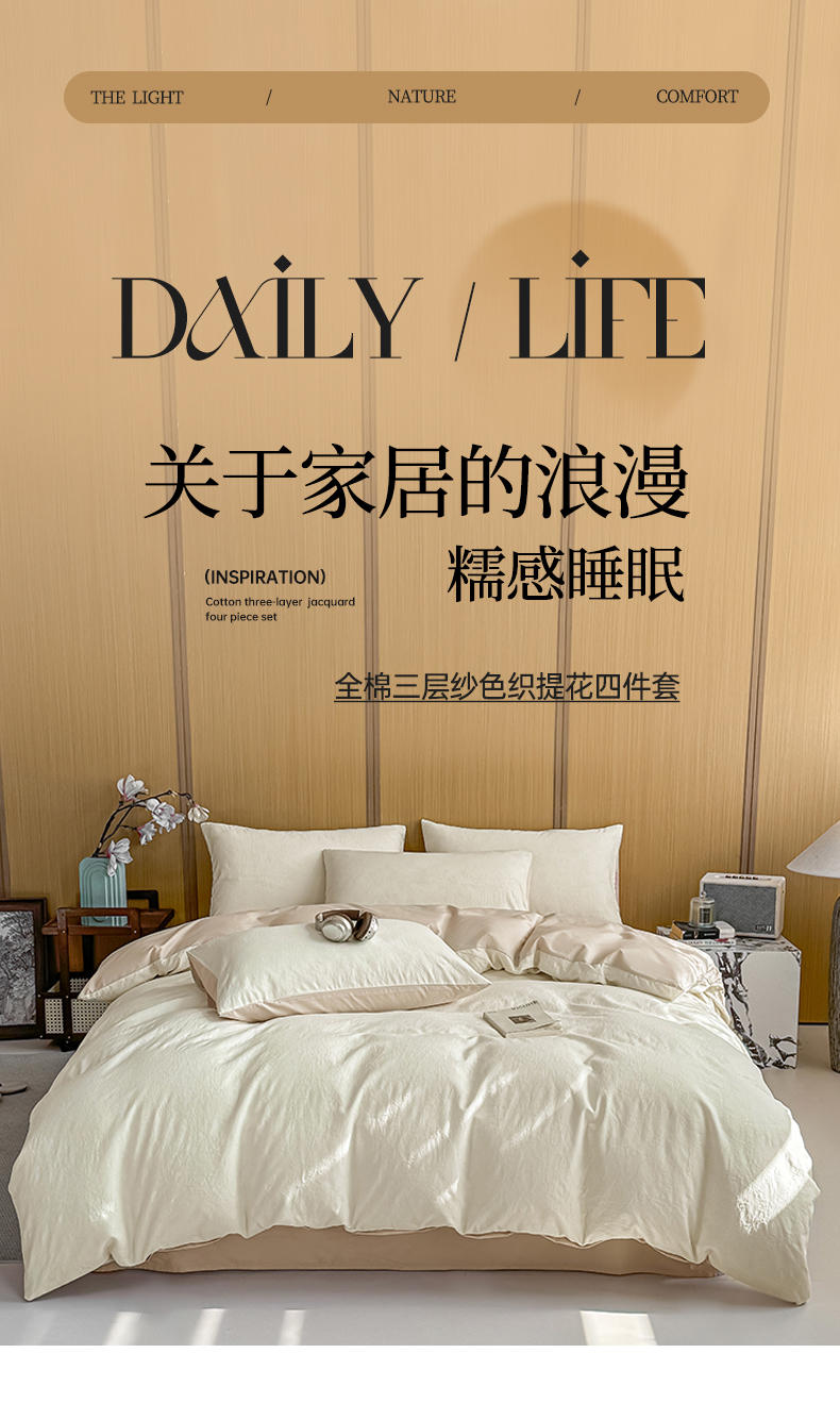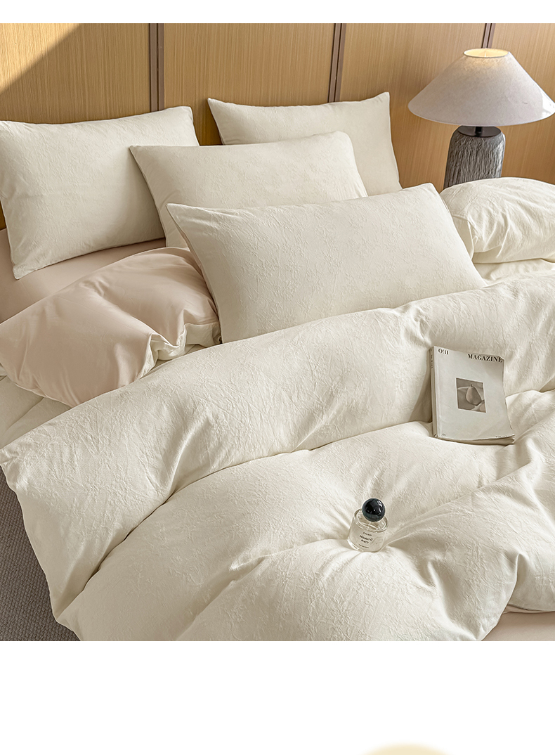 当前位置: 91家纺网 > 商品网购 > 床品套件 > 四件套 > 全棉普通四件套 > 灰鲸 2026新款全棉纯棉三层纱色织提花四件套 花影-杏仁奶霜