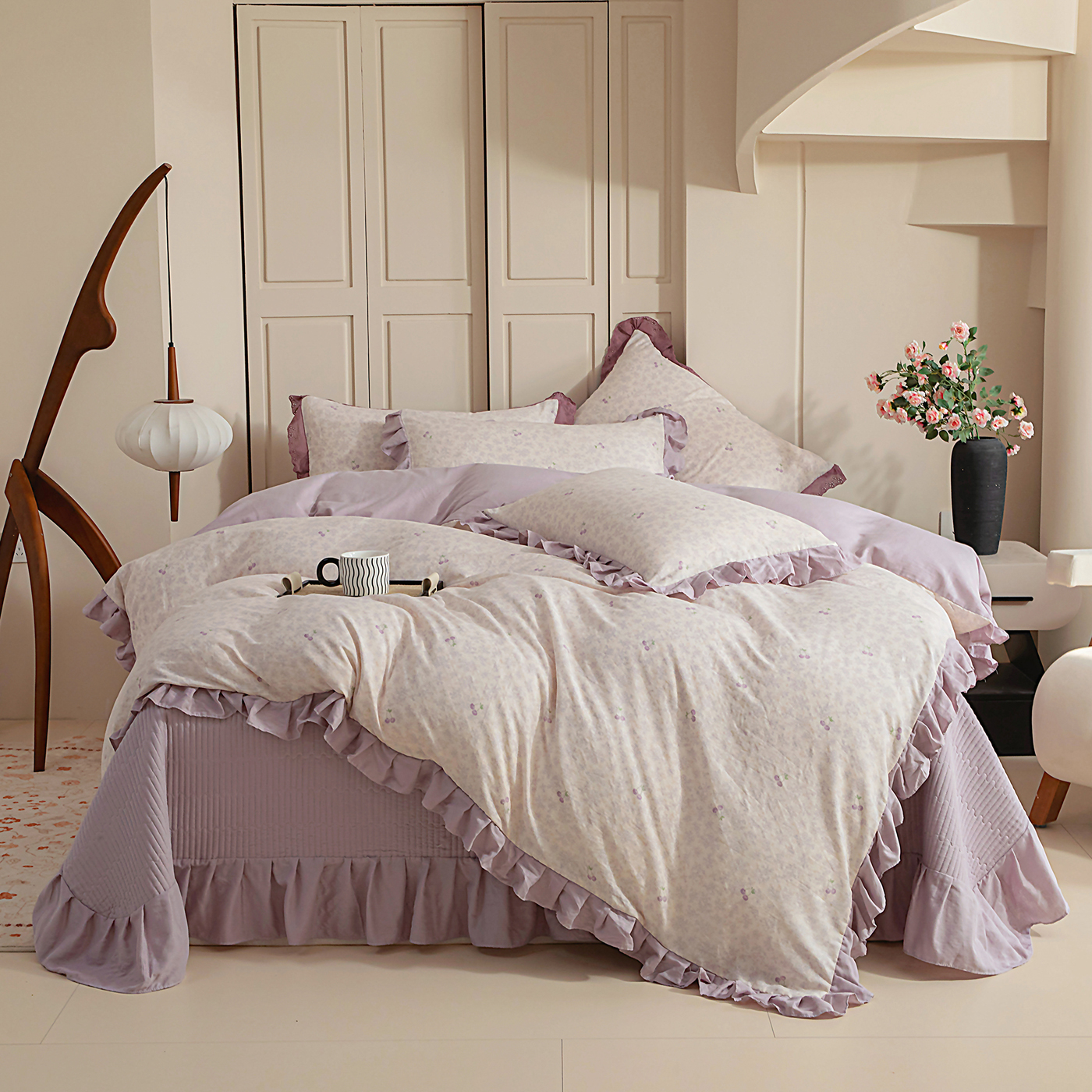 当前位置: 91家纺网 > 商品网购 > 床品套件 > 四件套 > 全棉普通四件套 > 情煊家纺 2026新款全棉双层纱花边款绣花款四件套 绣花款-樱桃