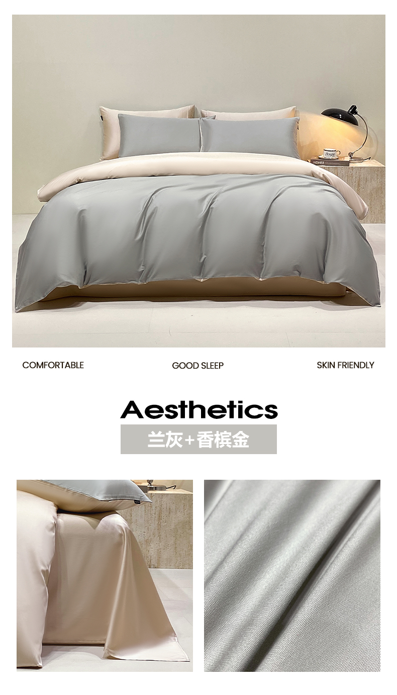 当前位置: 91家纺网 > 商品网购 > 床品套件 > 四件套 > 长绒棉四件套 > 拼社家纺 2026新款A类全棉50s双股100Pro贡缎长绒棉四件套全棉四件套简约纯色纯棉床上用品 组合图1