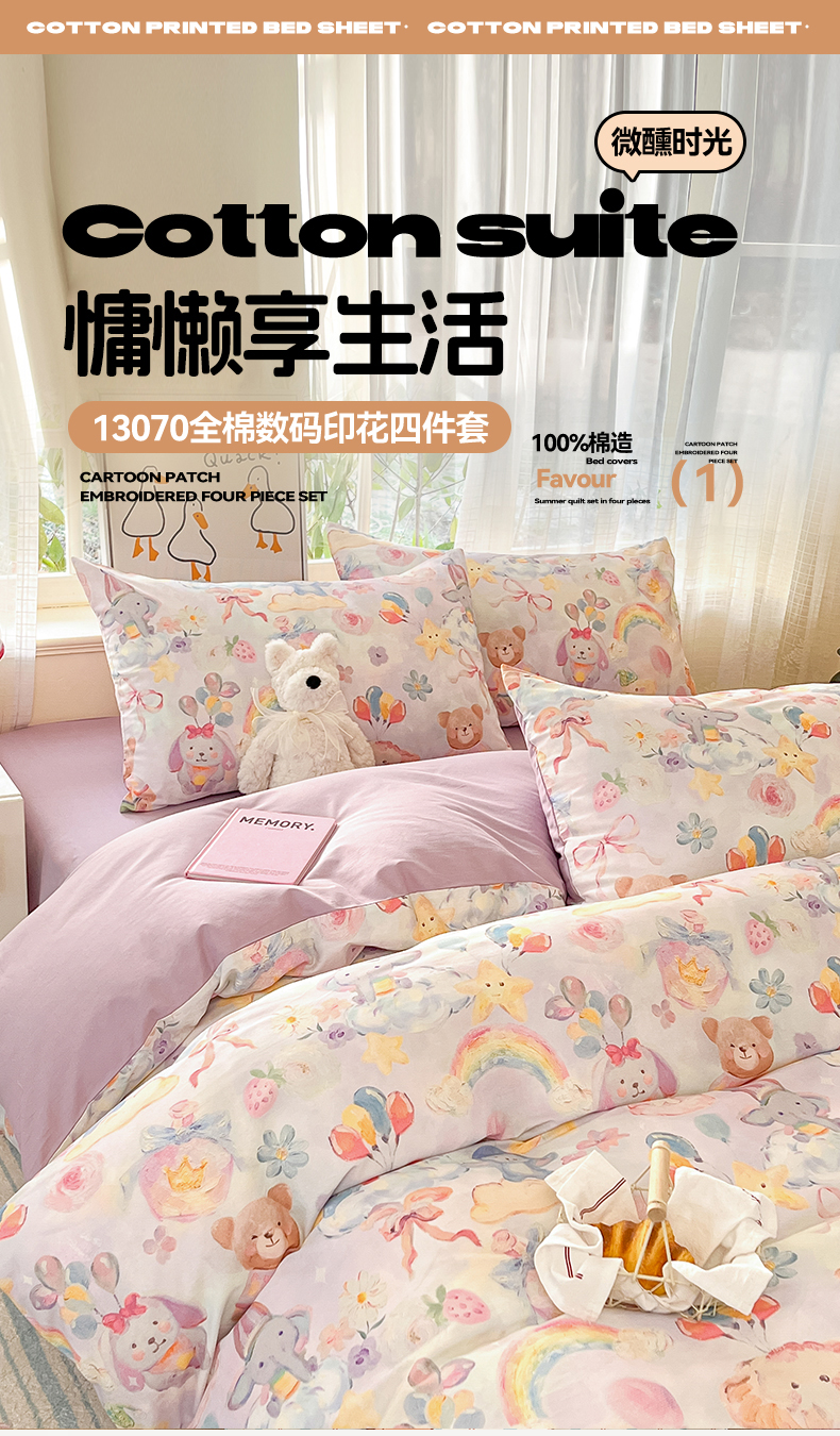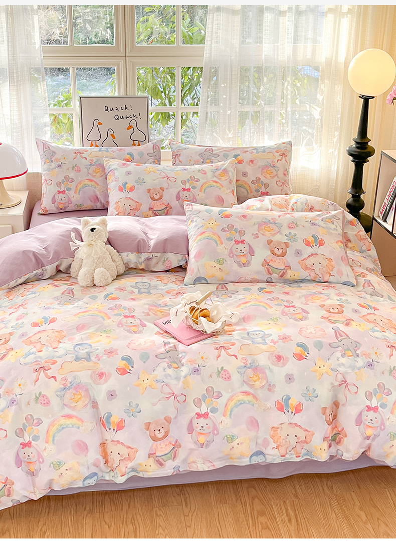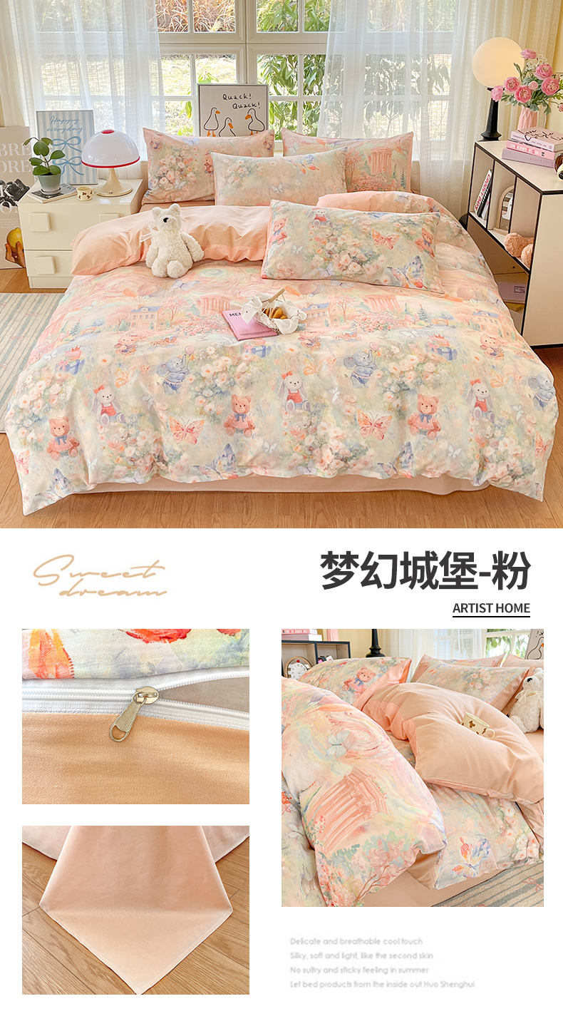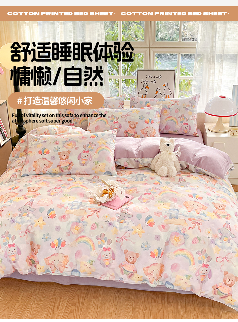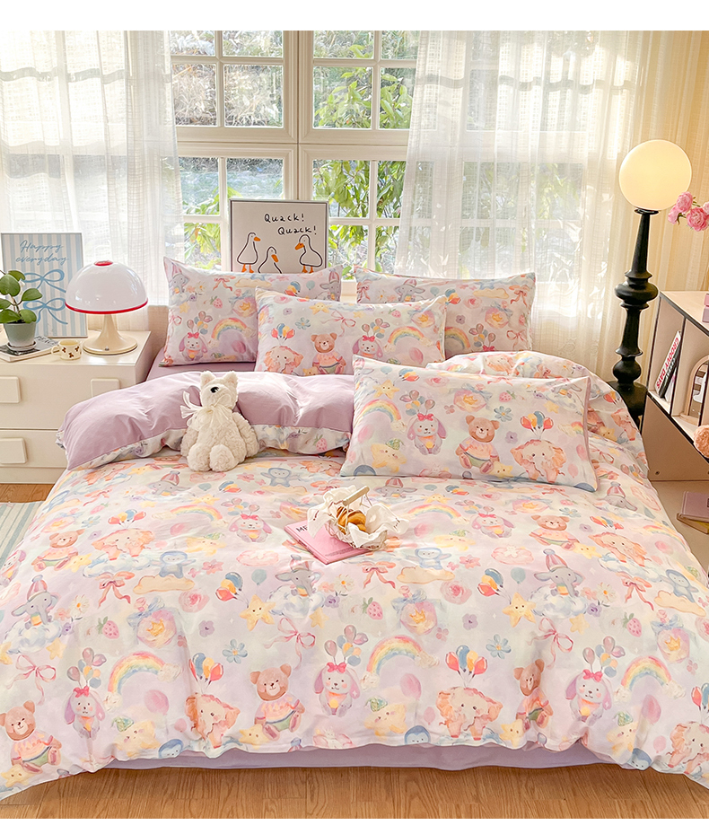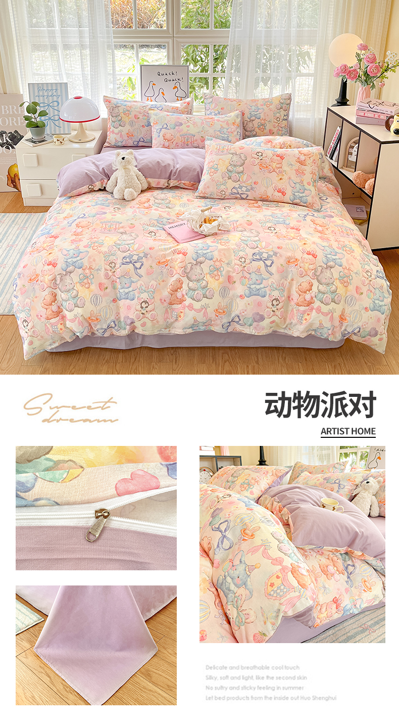 (总)睡美美家纺 2026新款13070数码印花全棉纯棉动物卡通三件套四件套,动物派对,萌宠乐园,梦幻城堡-绿,梦幻城堡-粉,花车小熊-蓝,洛克庄园,节日狂欢,花车小熊-紫,木马小象,人鱼公主,熊仔的玫瑰园,悠悠花园