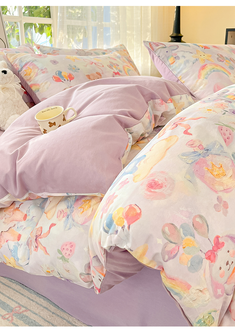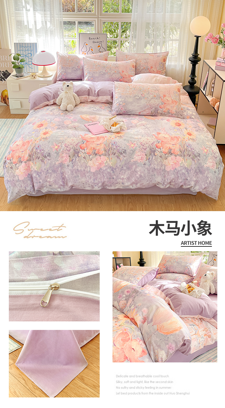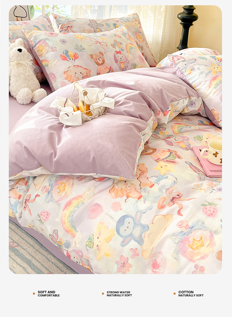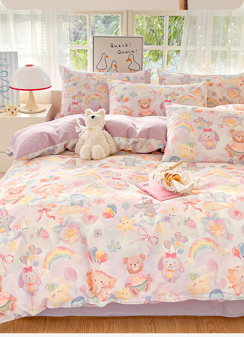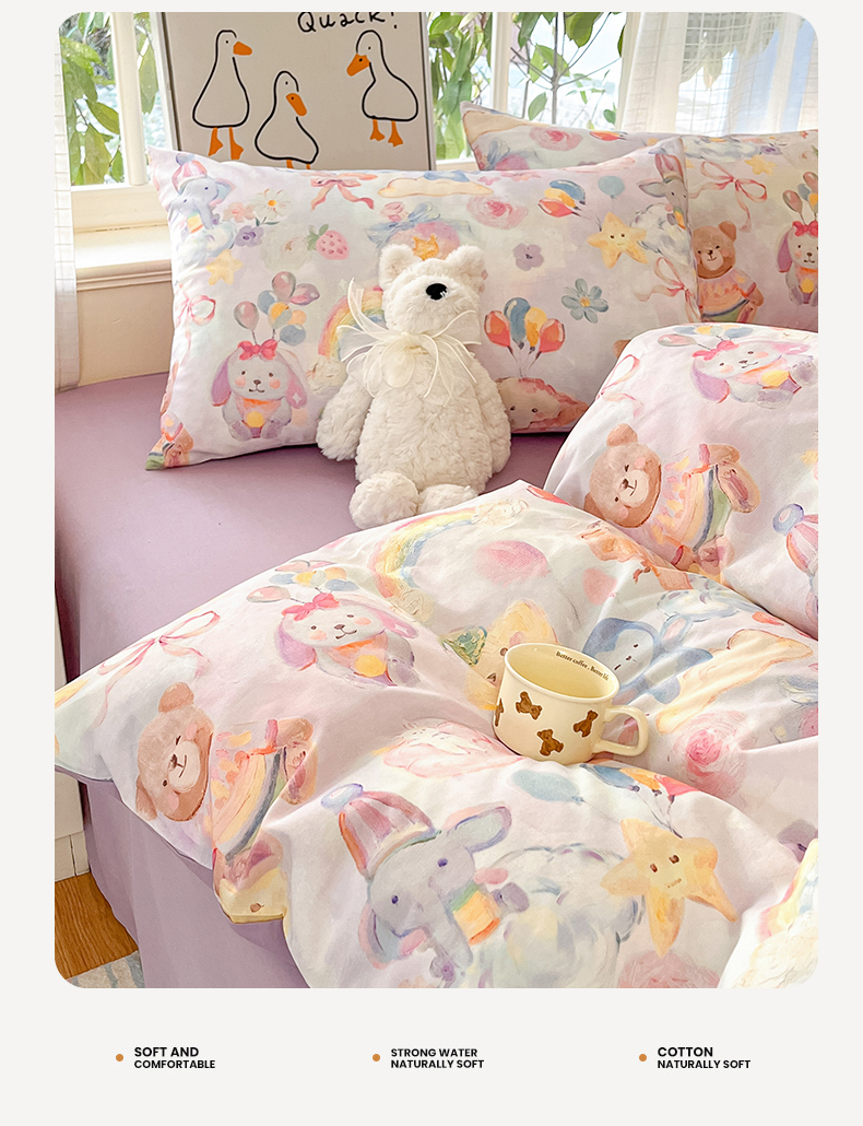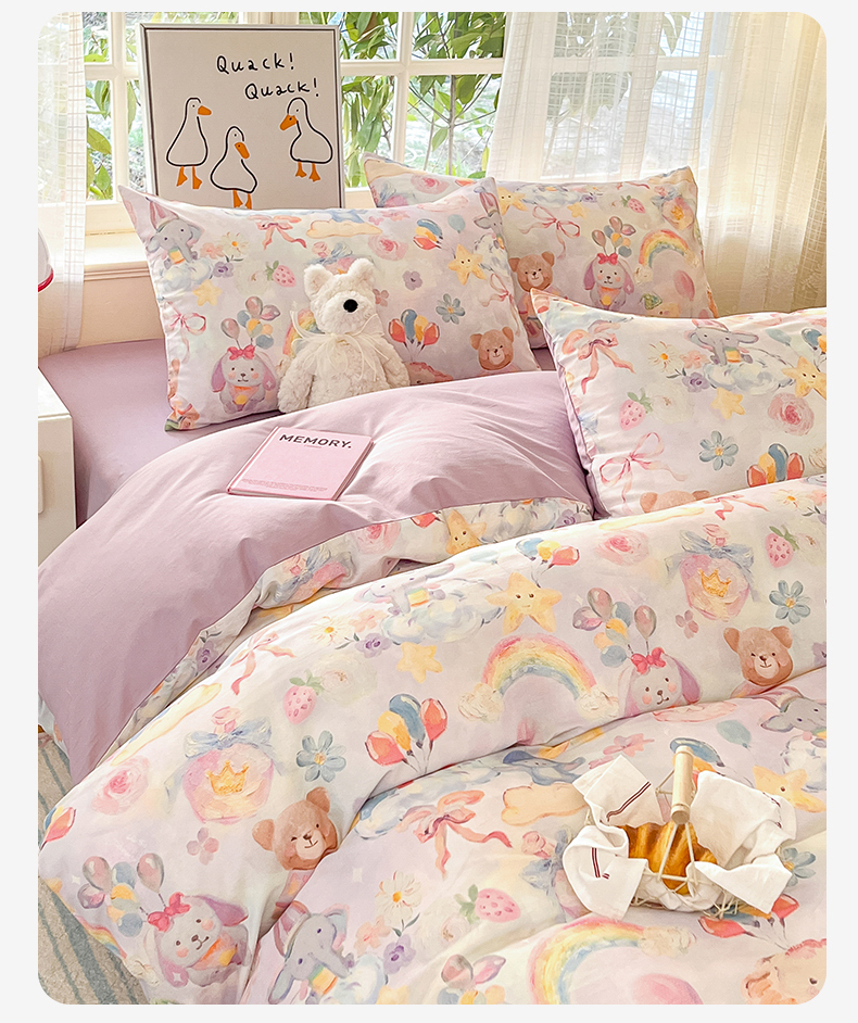 (总)睡美美家纺 2026新款13070数码印花全棉纯棉动物卡通三件套四件套,动物派对,萌宠乐园,梦幻城堡-绿,梦幻城堡-粉,花车小熊-蓝,洛克庄园,节日狂欢,花车小熊-紫,木马小象,人鱼公主,熊仔的玫瑰园,悠悠花园