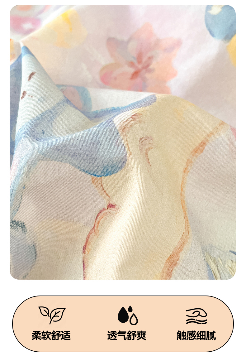 (总)睡美美家纺 2026新款水洗云朵棉亲肤花边款四件套,岛屿,蝴蝶,花序,花影,桃枝,田园,小碎花,星星人