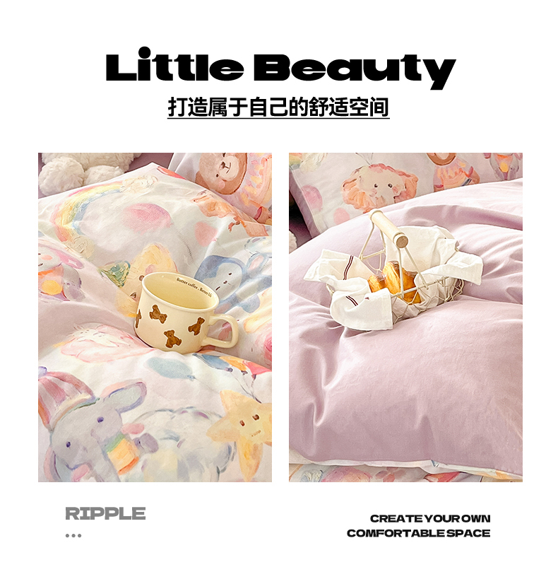(总)睡美美家纺 2026新款A类古法水洗棉法式花边四件套,彩虹小马,春日絮语,春野,粉豹纹,粉雾蔷薇,粉漾,格纹小象,海盐奶酪,花千朵,花田兔,灰棠,剪秋,乐町小马,美式,梦华录,梦幻格趣,梦幻灰,梦露,木马乐园,奶萌喵咖,南瓜童话,俏皮狗,青花瓷,赛琳娜,森屿,疏影,水晶葡萄,甜粉小窝,甜心萌宠,小黄花,小幸运-蓝,絮语,鱼多多