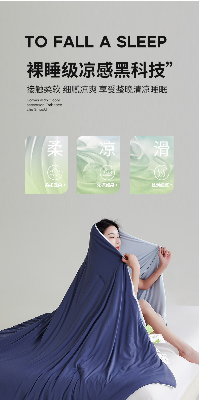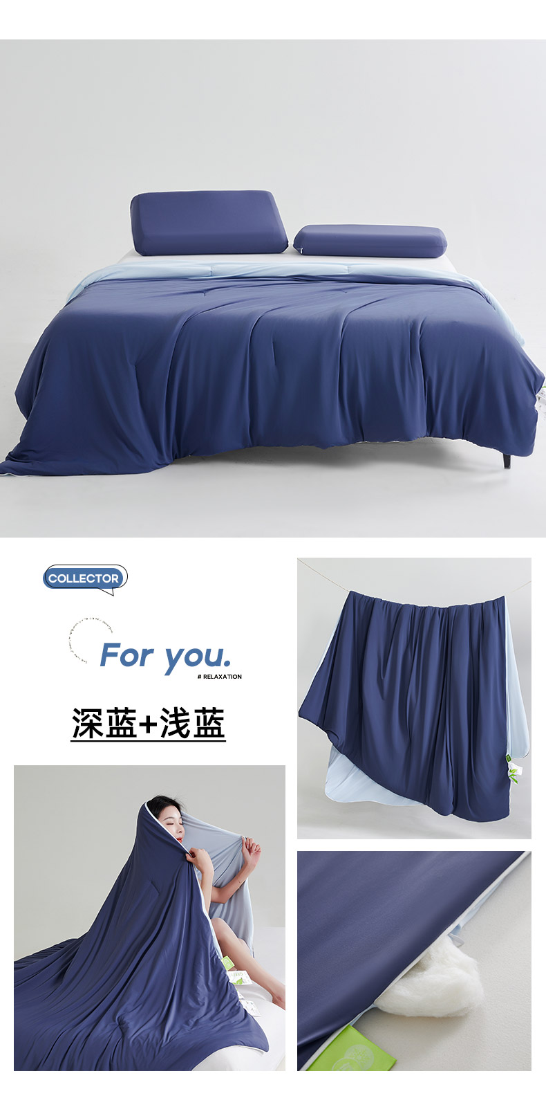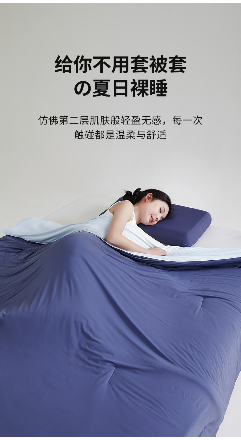 商品名称:熙宴家纺 2026新款锦氨凉感MAX脱脂棉花夏被 被子被芯 深蓝+浅蓝