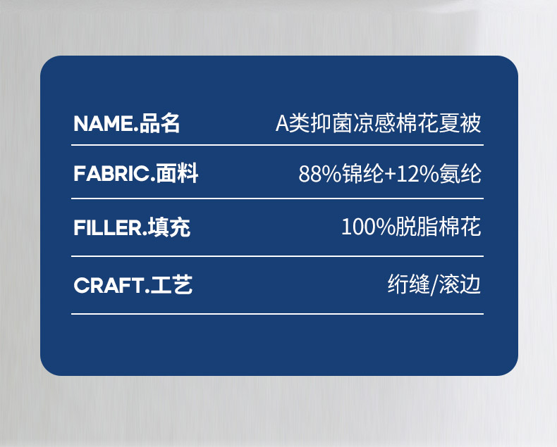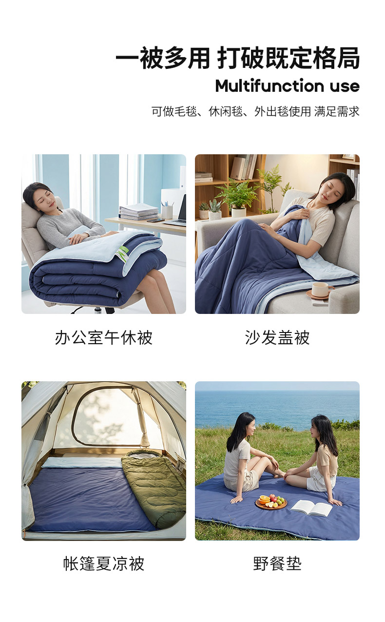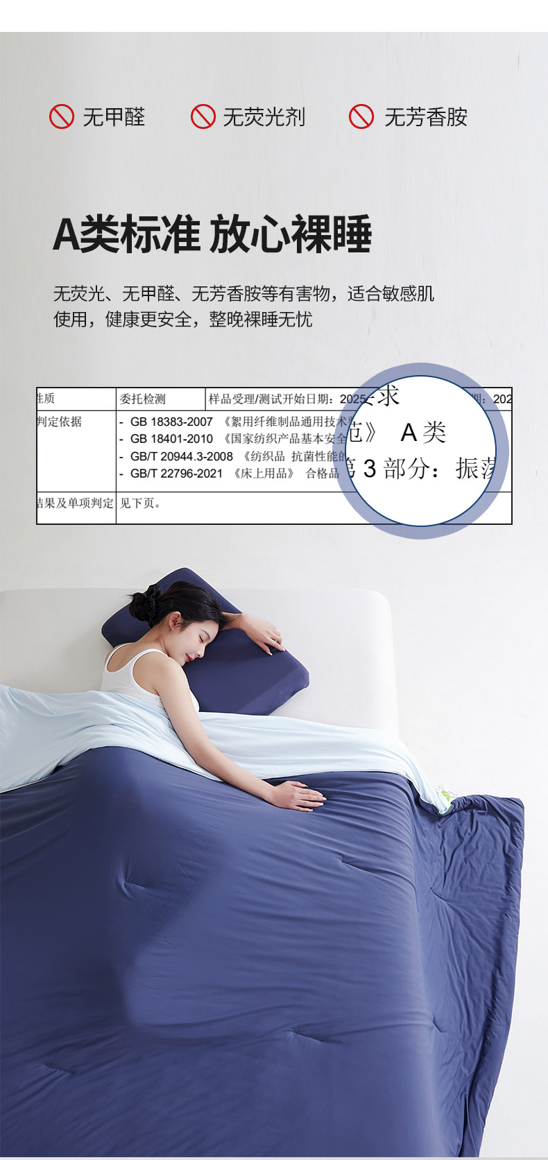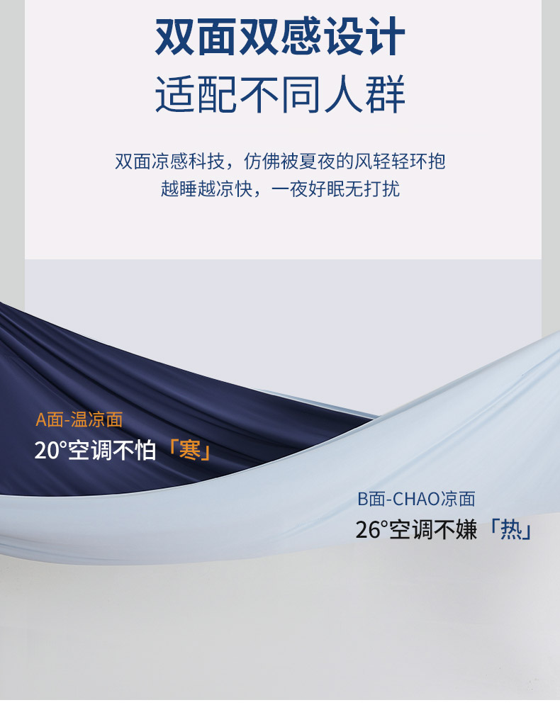 商品名称:熙宴家纺 2026新款锦氨凉感MAX脱脂棉花夏被 被子被芯 深蓝+浅蓝