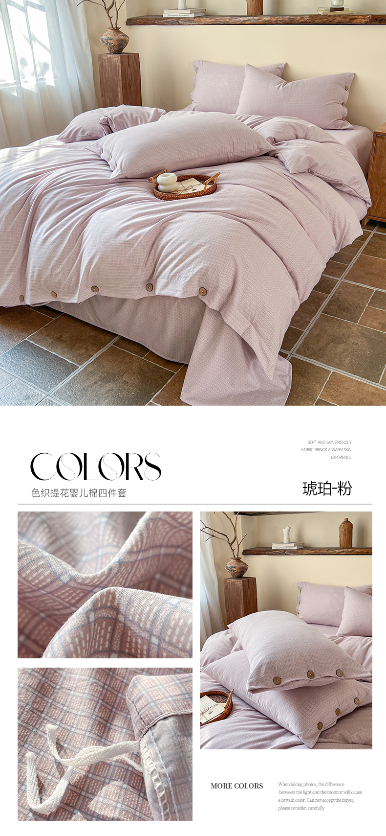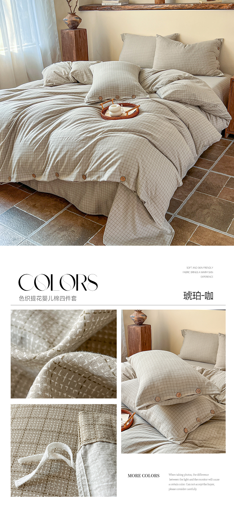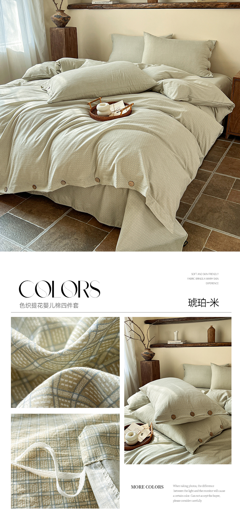 当前位置: 91家纺网 > 商品网购 > 床品套件 > 四件套 > 色织四件套 > 库里梦家纺 2026新款色织提花婴儿棉四件套 琥珀米