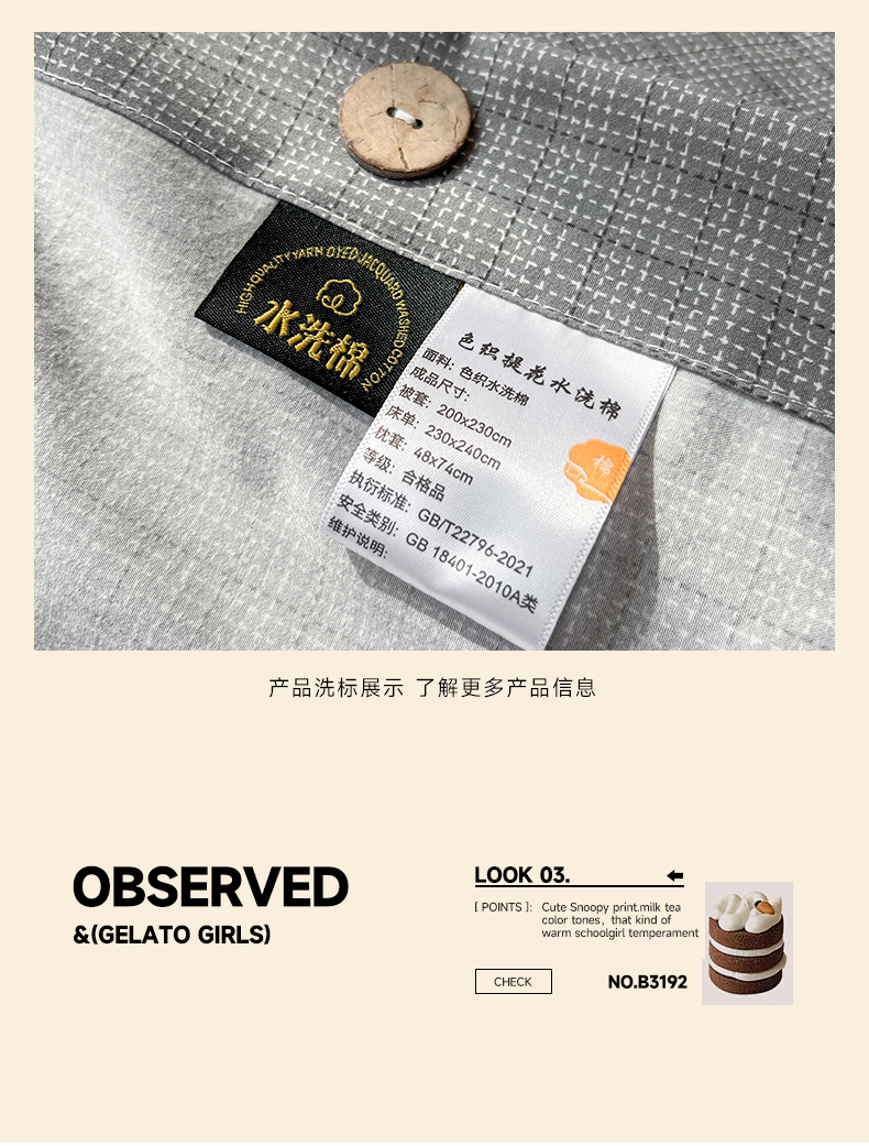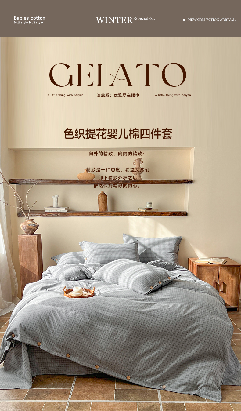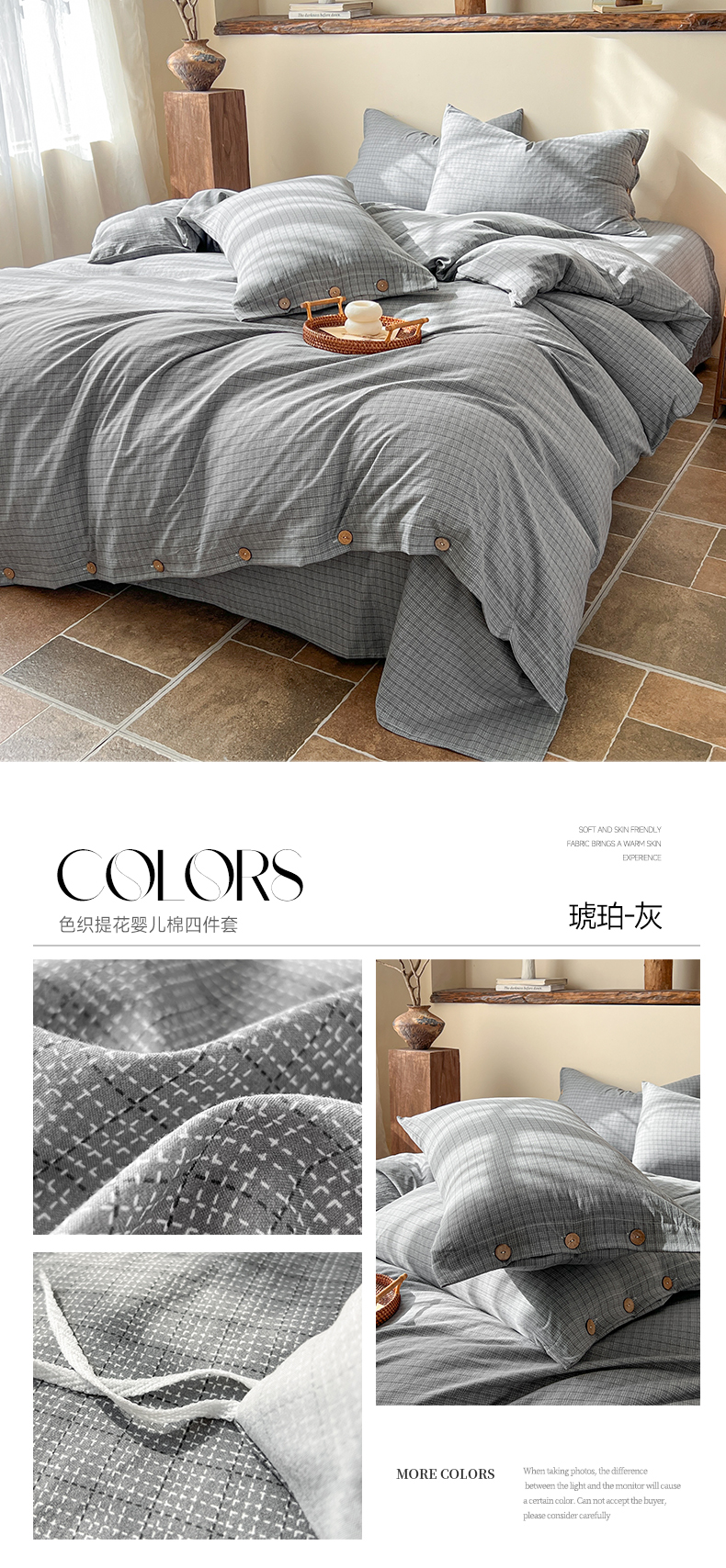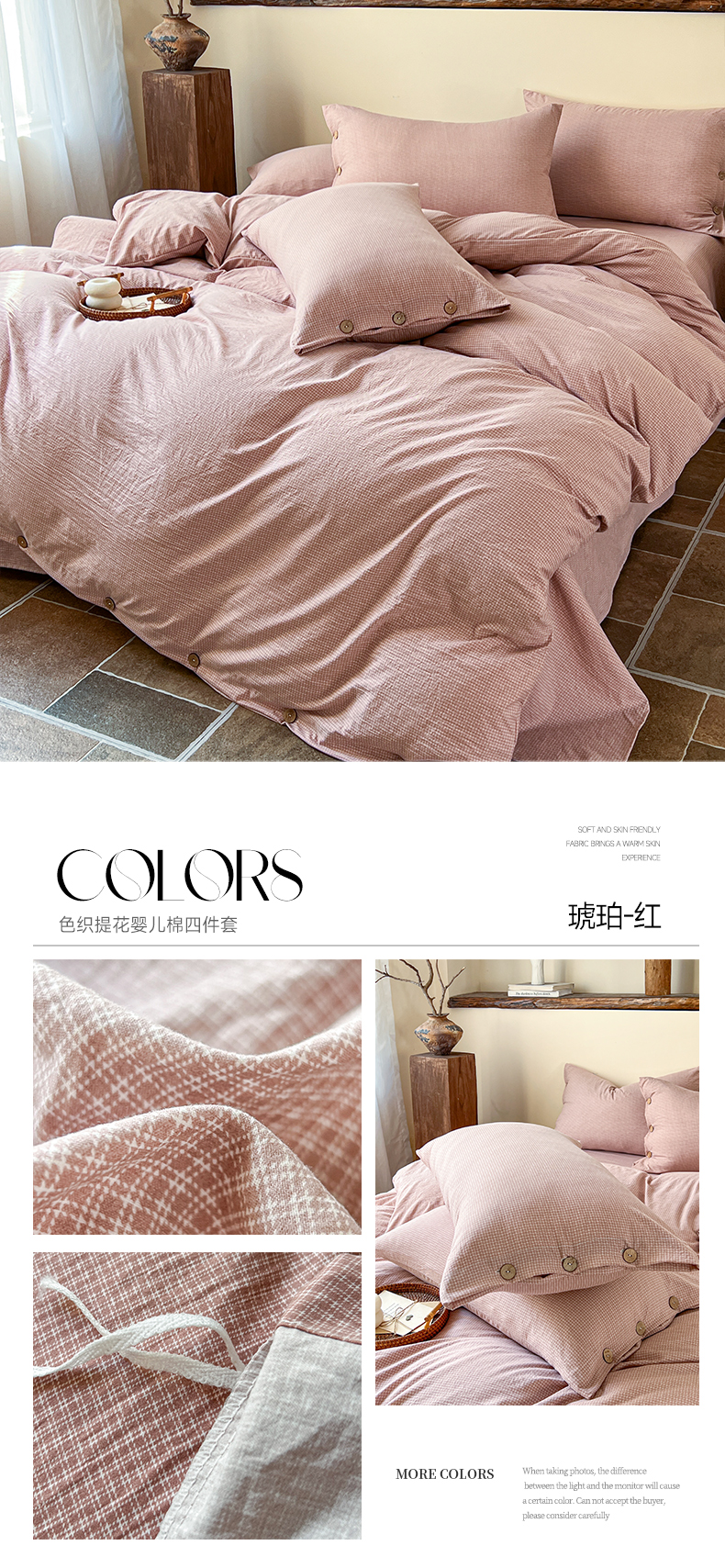 当前位置: 91家纺网 > 商品网购 > 床品套件 > 四件套 > 色织四件套 > 库里梦家纺 2026新款色织提花婴儿棉四件套 琥珀米