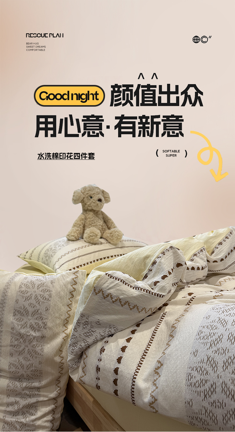 当前位置: 91家纺网 > 商品网购 > 床品套件 > 四件套 > 其它四件套 > 盼季家纺 2026新款简单款105g泡芙棉印花四件套-费尔岛 费尔岛系列-小马吉