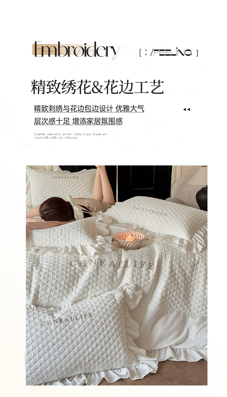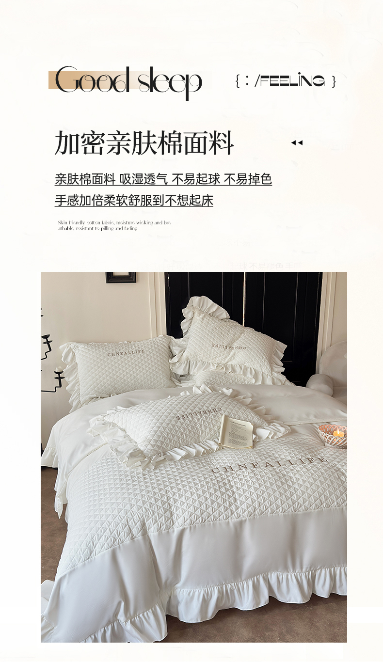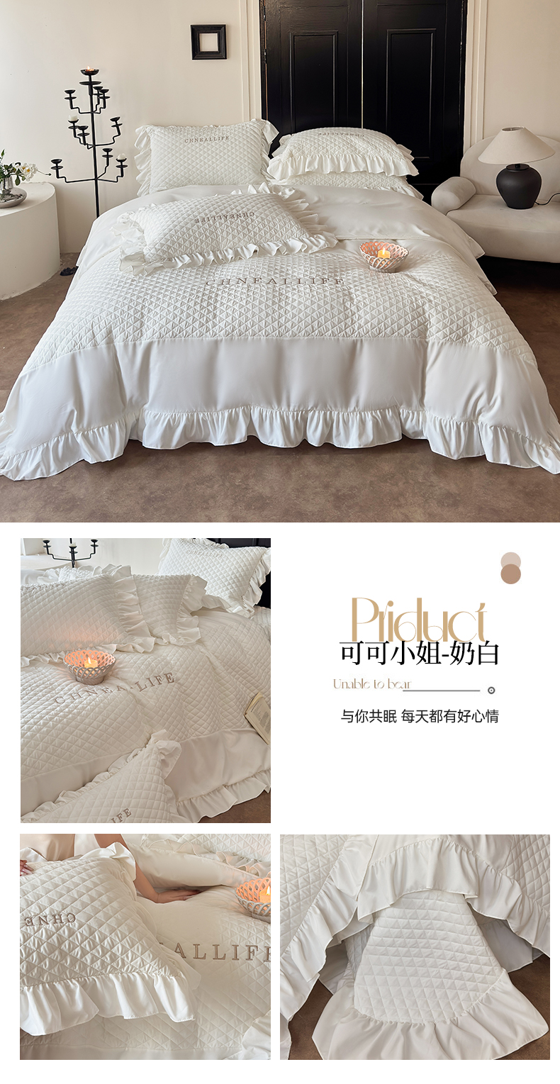 当前位置: 91家纺网 > 商品网购 > 床品套件 > 四件套 > 化纤活性四件套 > 豪美鑫 2026新款绗缝绣花四件套-可可小姐系列 可可小姐-奶白