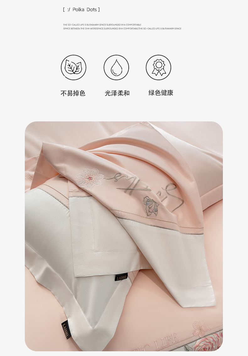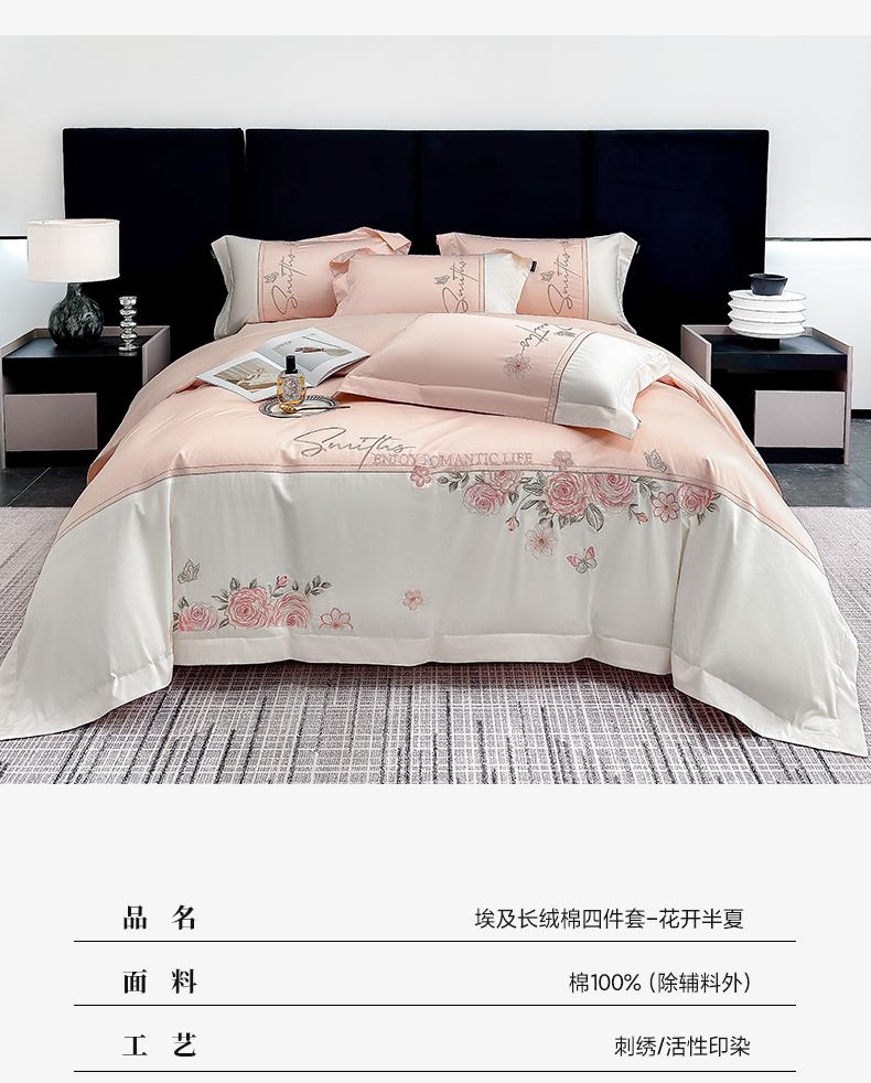 商品名称:欣宜家纺 2026新款100支全棉纯棉50x50s埃及贡缎长绒棉刺绣绣花四件套-花开半夏系列 花开半夏-轻奢粉