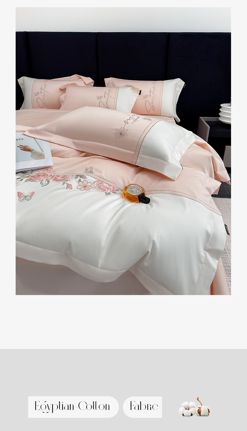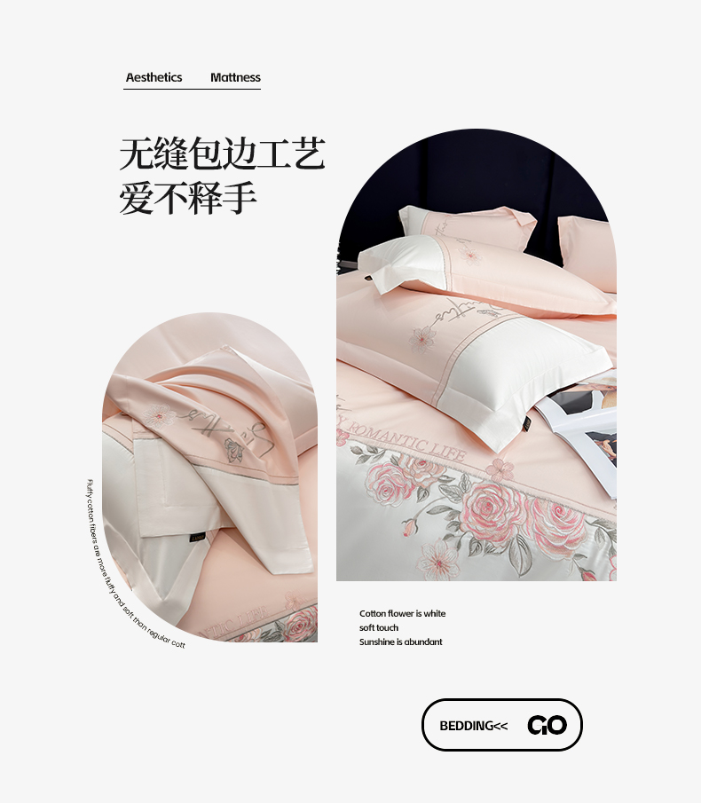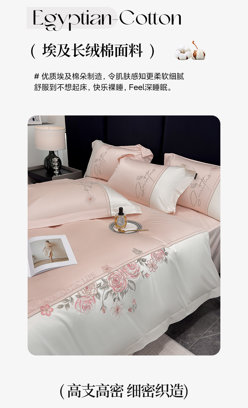 欣宜家纺 2026新款100支全棉纯棉50x50s埃及贡缎长绒棉刺绣绣花四件套-花开半夏系列 花开半夏-轻奢粉
