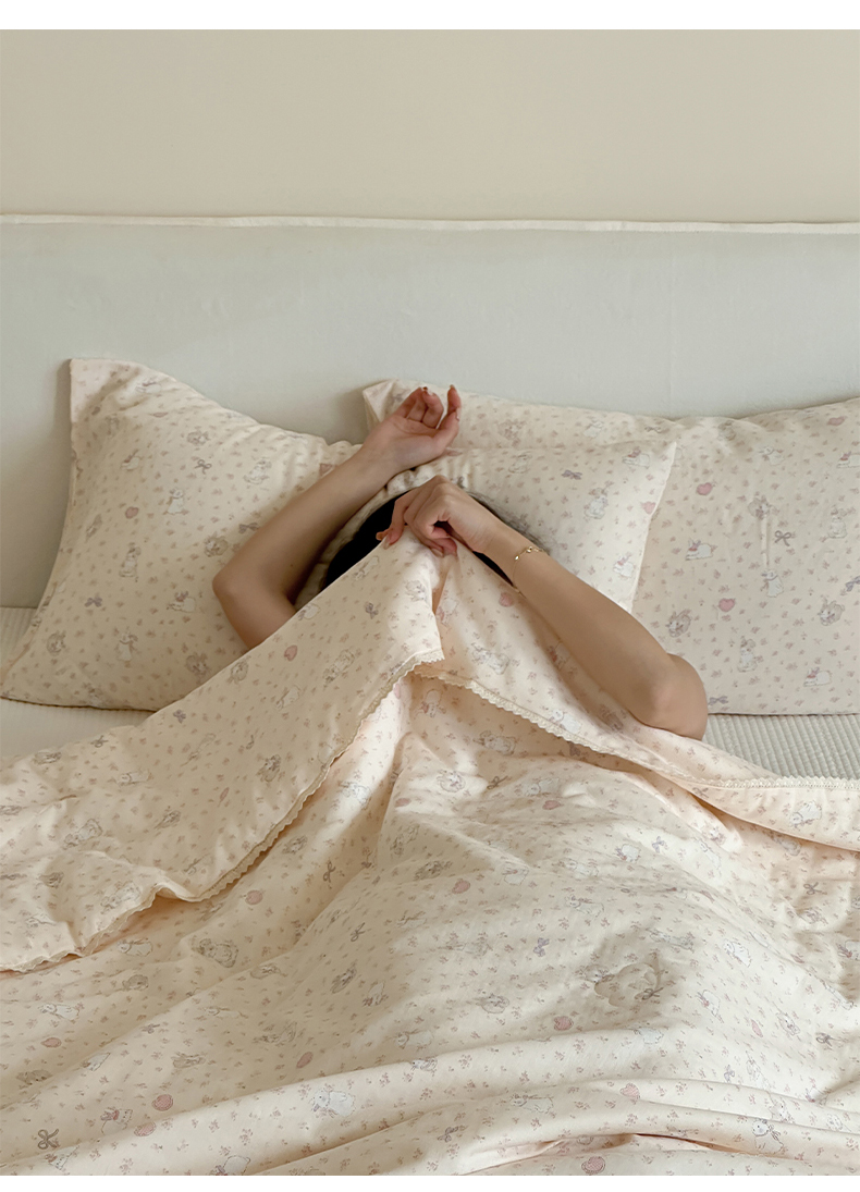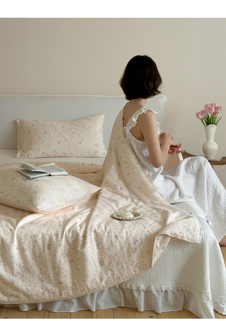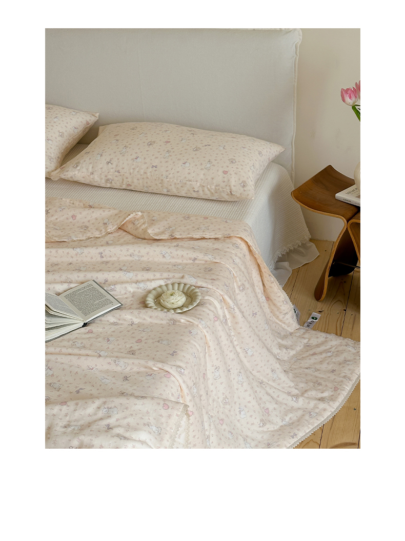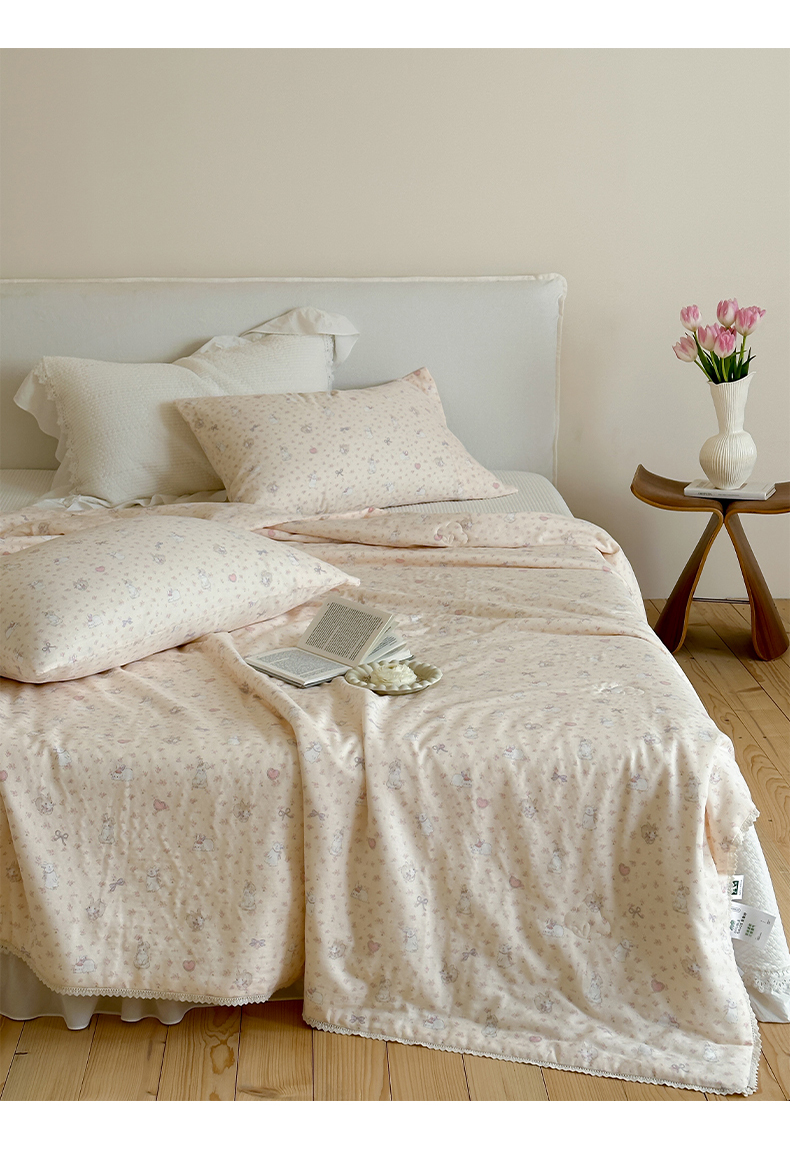 商品名称:一加一 2026新款全棉双层纱印花凉感夏被-云纱织梦 碎花邦尼兔