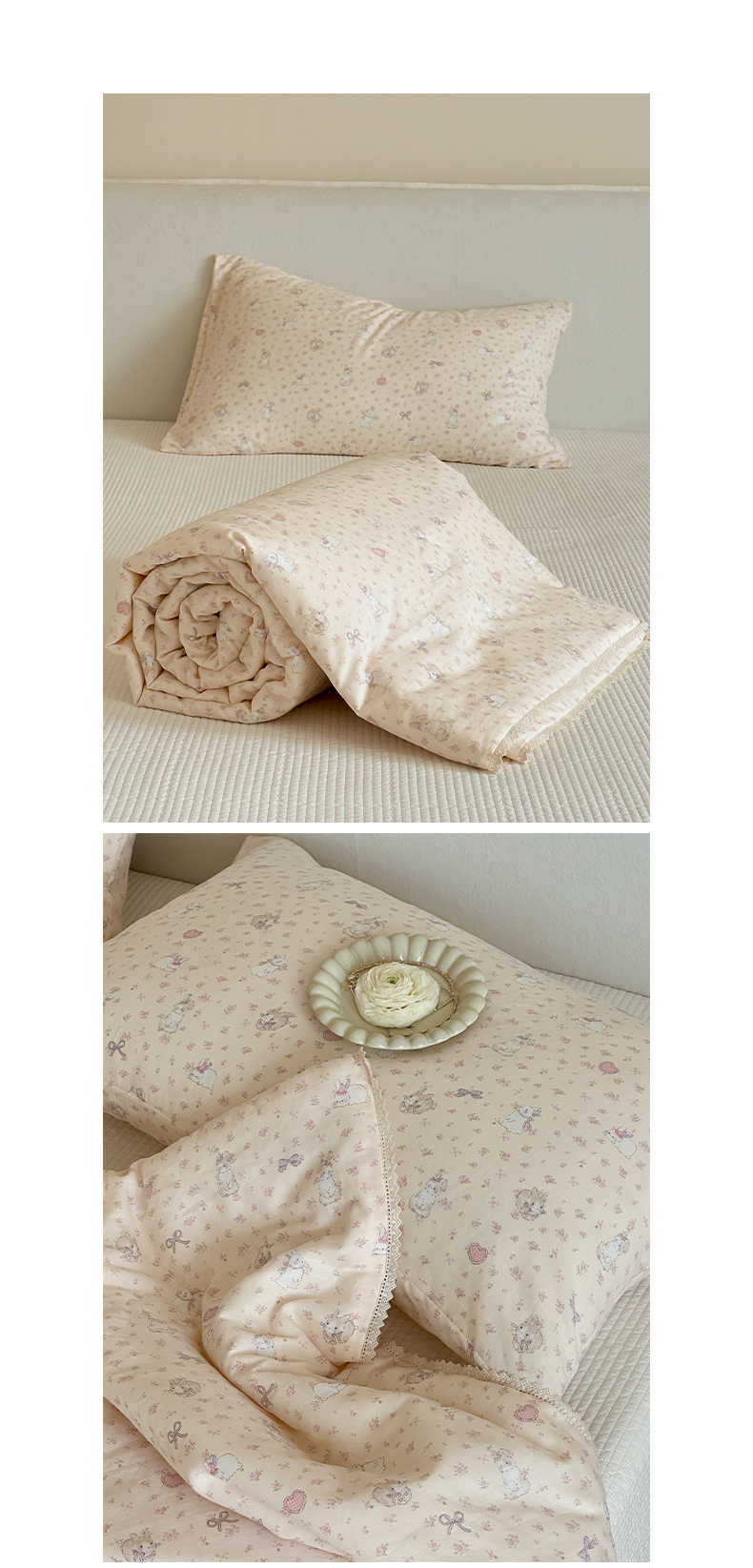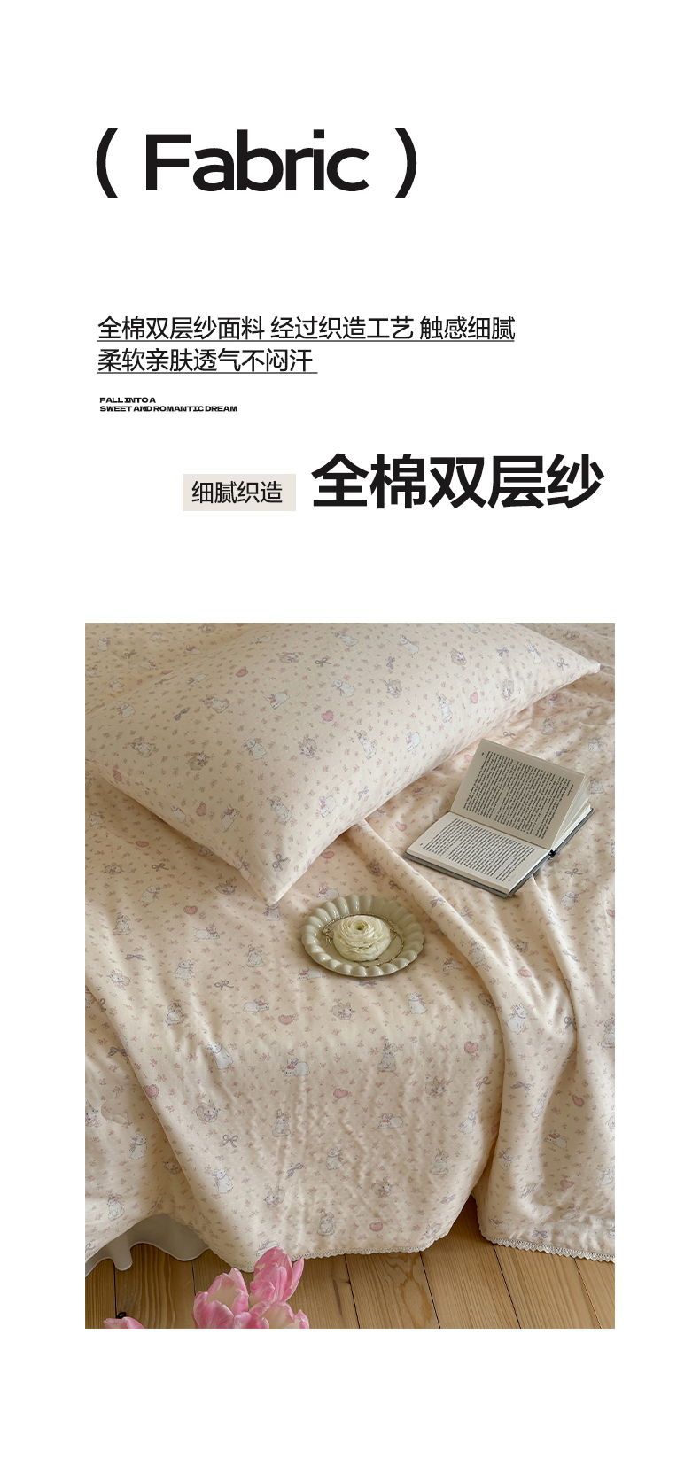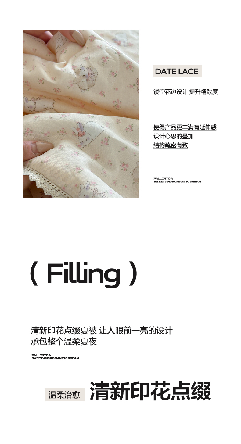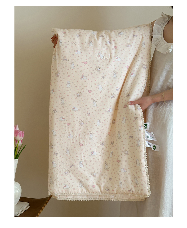 商品名称:一加一 2026新款全棉双层纱印花凉感夏被-云纱织梦 碎花邦尼兔