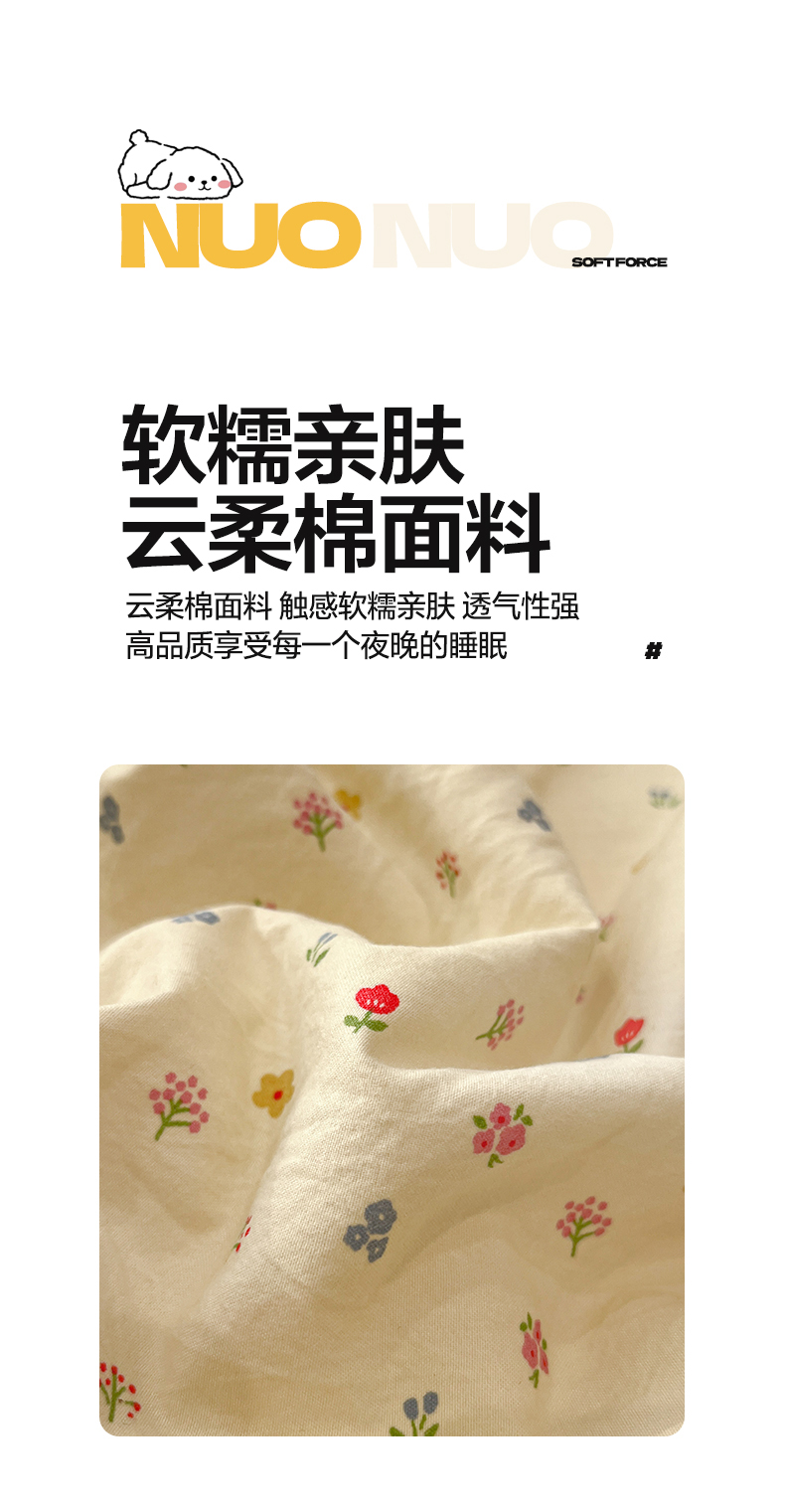 (总)一加一 2026新款洛卡棉印花大豆夏被四件套,白瓷花絮,彩色萝卜,彩色甜梦,粉紫花序,奶芙腊肠狗,南瓜兔派对,浅蓝甜梦,青禾随影,软心小狗,元气小果,紫樱奶芙