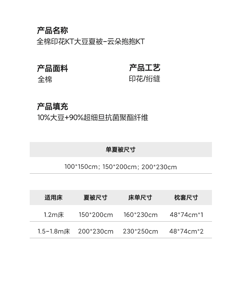 商品名称:(总)一加一 2026新款全棉印花KT大豆夏被-云朵抱抱KT