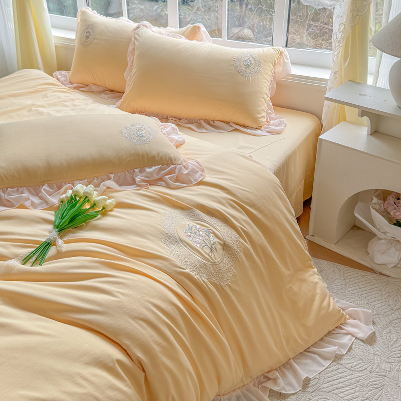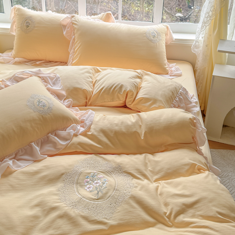 (总)橘子家 2026新款卡通绣花四件套,欢乐日记,梨好鸭,马上有福,咩咩羊,帕皮狗,泰迪狗,星星人,熊仔,有钱花